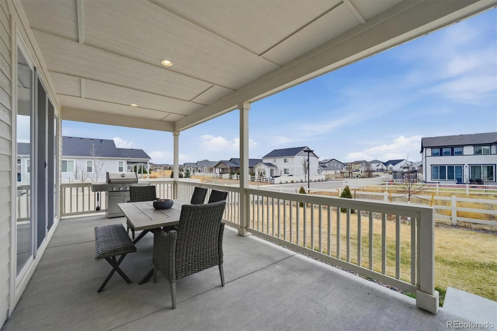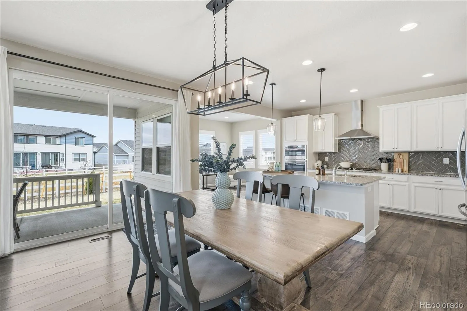 Welcome to 5667 Saddle Skirt Street. This 5 bedroom and 3 bathroom home has a 3 car tandem garage is located in Stone Creek Ranch in Parker on a prime lot backing to open space. This beautifully upgraded home offers an open layout designed for comfortable everyday living and effortless entertaining. Step inside to find plank floors, soaring ceilings, and abundant natural light throughout the main level. The spacious layout includes a bonus sunroom that creates the perfect place to relax, gather, or enjoy morning coffee. The kitchen is the heart of the home, featuring granite countertops, oversized center island, gas range with hood, white cabinetry, stainless-steel appliances, and walk-in pantry. The 2-story family room has a gas fireplace and is a great setting for entertaining and everyday living. A main-floor bedroom offers flexibility for guests or a private home office. You will love the outdoor living through the double sliders to the backyard designed for natural enjoyment. The spacious covered patio overlooks the professional landscaping, creating a peaceful setting for relaxing or entertaining. The upstairs the primary suite is a true retreat, featuring dual vanities, soaking tub, shower, and walk-in closet. There are 3 additional bedrooms, a full bathroom, and a convenient upper-level laundry room. Custom exterior lighting adds to the unique feel of the home. Residents of Stone Creek Ranch enjoy access to exceptional community amenities including a clubhouse, fitness center, and resort-style pool. Enjoy the Cherry Creek Trail system that continues into Denver. This home offers the perfect balance of comfort, style, and location with nearby biking and walking trails, parks, and easy access to E-470, Denver Tech Center, and downtown Parker. Just minutes from trails, parks, and the vibrant shops and dining along Downtown Parker’s Mainstreet, the location combines convenience with Colorado lifestyle.
