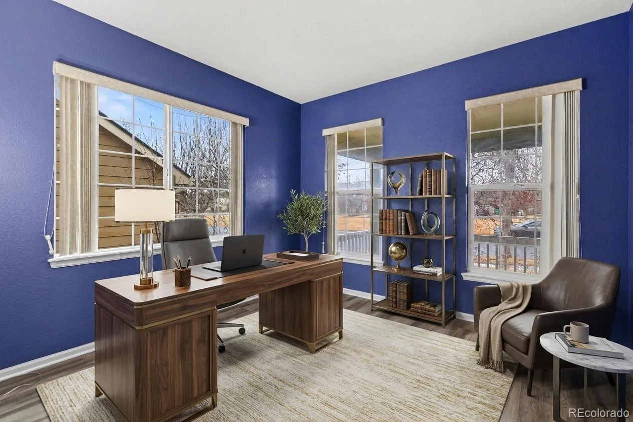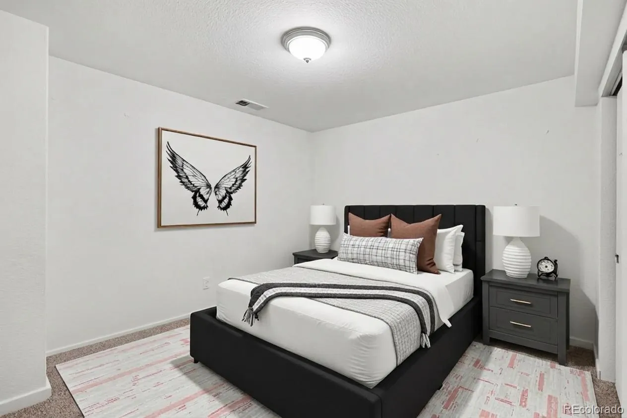 Welcome to a spacious two-story home tucked on a quiet horseshoe-style street in the Bromley Park neighborhood, offering a peaceful setting with minimal through traffic while still providing easy access in and out of the community. Built by Richmond American Homes in 2001, this well-maintained property offers over 2,600 finished square feet above grade with a flexible layout designed for everyday living and entertaining. Step inside to soaring vaulted ceilings, large windows that fill the home with natural light, and an inviting living room anchored by a wood-burning fireplace and built-in projector setup—perfect for movie nights or watching the big game. The spacious eat-in kitchen features abundant cabinetry, tile counters, a center island, double ovens and a comfortable flow into the main living areas, making it ideal for gatherings. A formal dining room adds space for special occasions, while the main-floor bedroom and separate den provide flexibility for guests, a home office or playroom. Upstairs you’ll find four bedrooms including a generous primary suite with a five-piece bath and walk-in closet, plus the convenience of an upper-level laundry room. The finished basement already includes two bedrooms (one non-conforming), full bath and large recreation area. Outdoor living is where this home truly shines. The covered back deck features a built-in outdoor kitchen complete with gas grill, smoker and refrigerator, creating the perfect space for Colorado evenings with friends and family. The backyard also includes a large storage shed for tools, gear or outdoor toys. Another standout feature is the finished garage with industrial-grade vinyl flooring—an ideal spot for projects, a workout area, or a unique indoor/outdoor hangout space where neighbors can gather. Located within the Bromley Park community with easy access to parks, schools and commuter routes, this home offers space, flexibility and great entertaining areas inside and out.