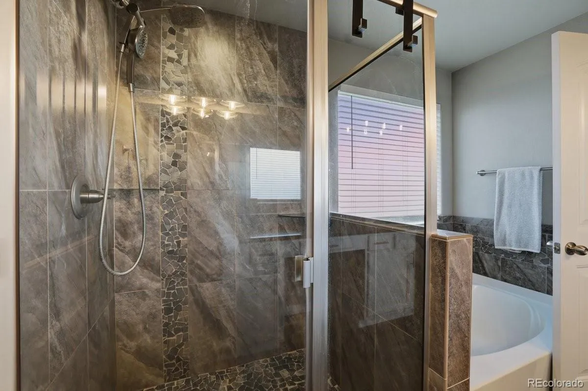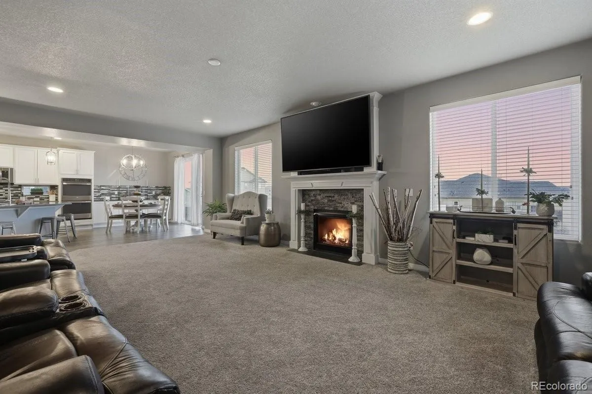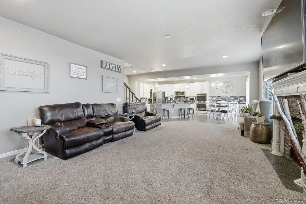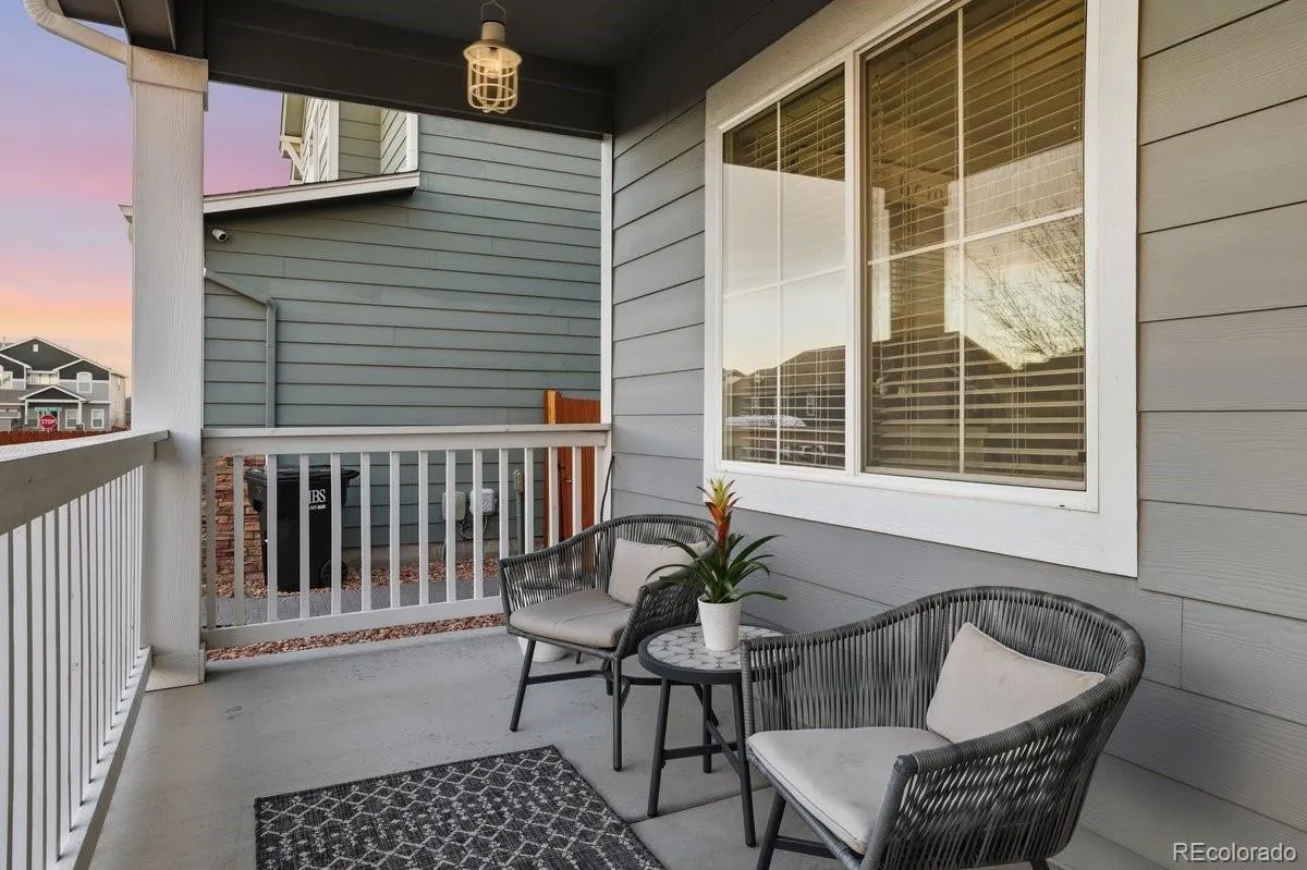 This stunning single-owner home has been thoughtfully upgraded from top to bottom, with no detail overlooked. Nestled in the highly sought-after Meridian Ranch community, the property enjoys an ideal location directly across from a scenic walking trail, near multiple parks, and just minutes from the main recreation center and pool. A welcoming front porch offers the perfect spot to relax and enjoy Colorado’s beautiful weather. Step inside to a striking entryway that immediately sets the tone for the home’s elegant design. To the left, a versatile bedroom—currently used as a private office—features French doors, creating an ideal space for remote work or guests. The gourmet kitchen is truly the heart of the home, seamlessly opening to the spacious living room for effortless entertaining. Designed with both style and function in mind, it boasts a double oven, an expansive pantry, gas stove top, and an oversized center island perfect for gathering. Abundant cabinetry, along with a convenient breakfast buffet nook, ensures exceptional storage and serving space. From the kitchen, enjoy clear sightlines to the inviting living area and the beautifully landscaped backyard, creating a bright and connected living experience. The living room offers generous space with a cozy gas fireplace as its welcoming focal point. Upstairs, a versatile loft provides the perfect setting for a second family room, exercise space, playroom, or whatever suits your lifestyle. All three bedrooms on the upper level are spacious and feature large walk-in closets. The primary suite includes an adjoining five-piece bath with a double vanity, updated lighting, and a relaxing, spa-like atmosphere. For added convenience, the laundry room is located upstairs between the bedrooms. The unfinished basement, with its 9-foot ceilings, offers abundant room to grow. Saving one of the best features for last, the landscaped backyard creates a peaceful oasis ideal for gatherings and everyday enjoyment.