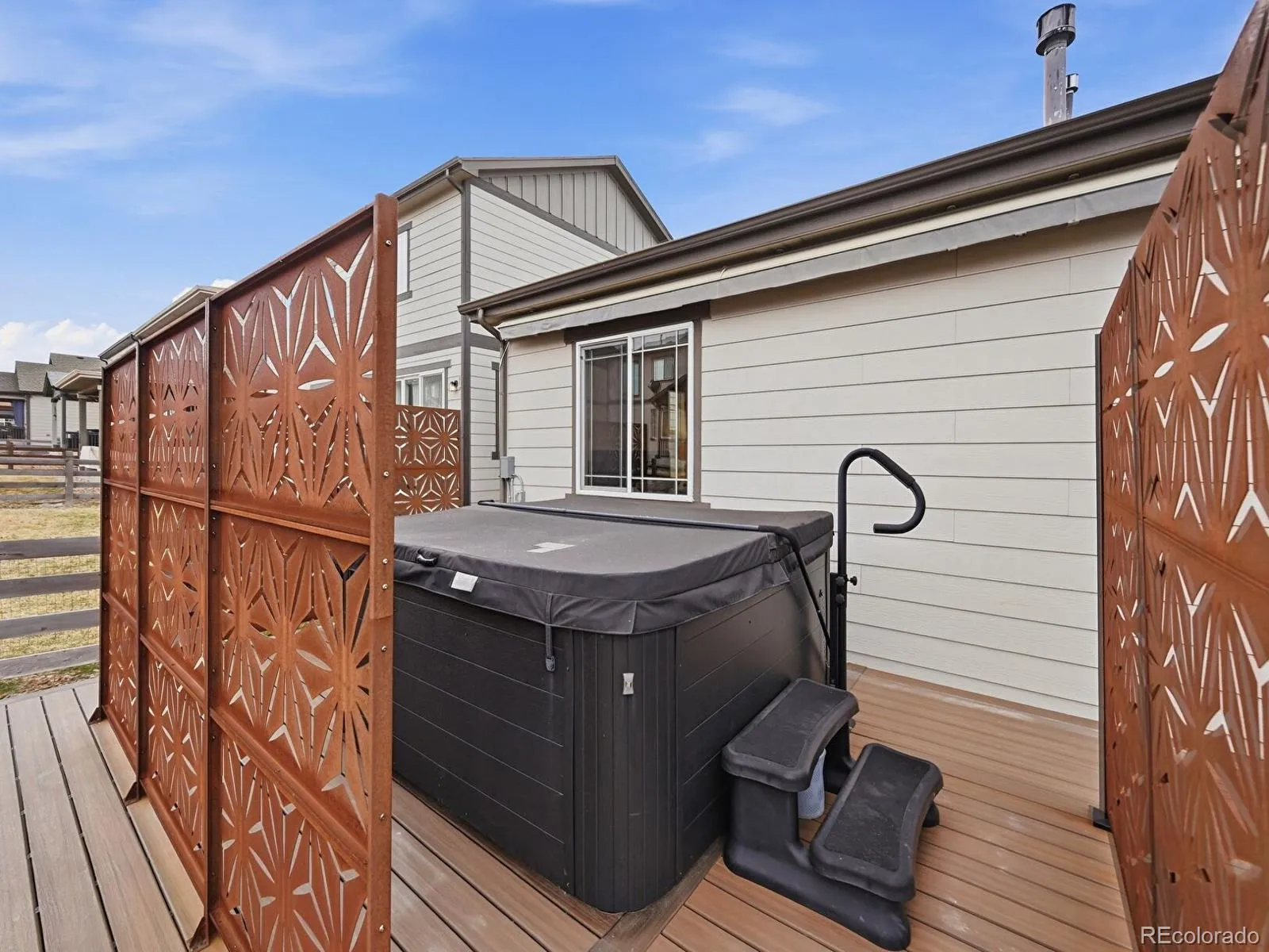 Assumable 30-yr 2.25% interest rate for qualified buyers! The Ultimate Smart Home & Backyard Retreat! This high-efficiency gem in Copperleaf is a masterclass in modern living. Powered by a 6-year-old solar system, this home boasts incredibly low utility bills. The interior features sprawling 10’ ceilings, 8’ doors, professional Sherwin-Williams paint, a rare Primary Suite with a custom barn door, an upgraded kitchen with a double row of cabinets, breakfast bar and formal dining room. Formal dining room could be converted into a 3rd bedroom. Plus, it includes a whole house fan and the whole home humidifier for superior comfort.The backyard is an entertainer`s dream, featuring a 2-year-old Trex deck with a 5-seat Ozone spa, a 30’ retractable privacy awning with wind-sensing technology, and stylish Corten Steel fencing. Fully built as a Smart Home, it includes fiber-optic Ethernet, an app-controlled B-Hyve sprinkler system, and an Ozone laundry system – no detergent needed! Structural peace of mind is built-in with an active radon mitigation system, French drains, and a 7-year-old roof. Enjoy direct access to the High Plains Trail, linking to Centennial & Cherry Creek Trails and the brand-new King Soopers Marketplace opening this summer. Located in the coveted Cherry Creek Schools District!
