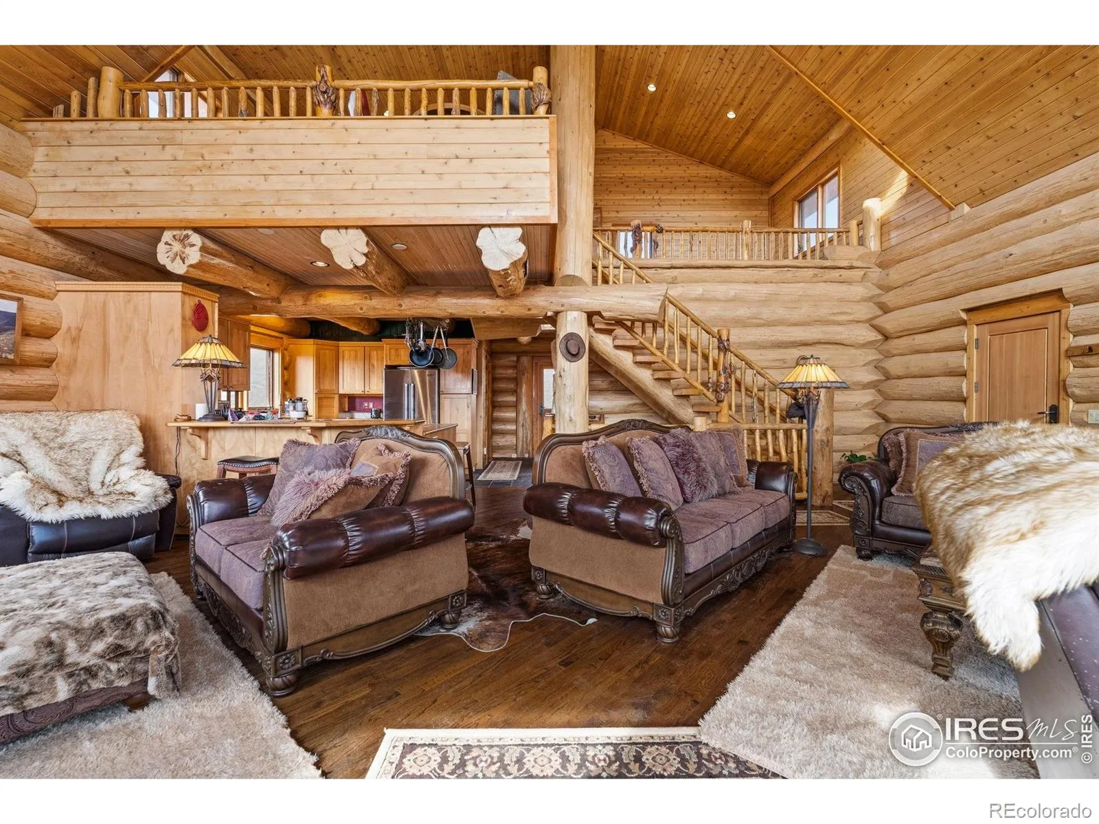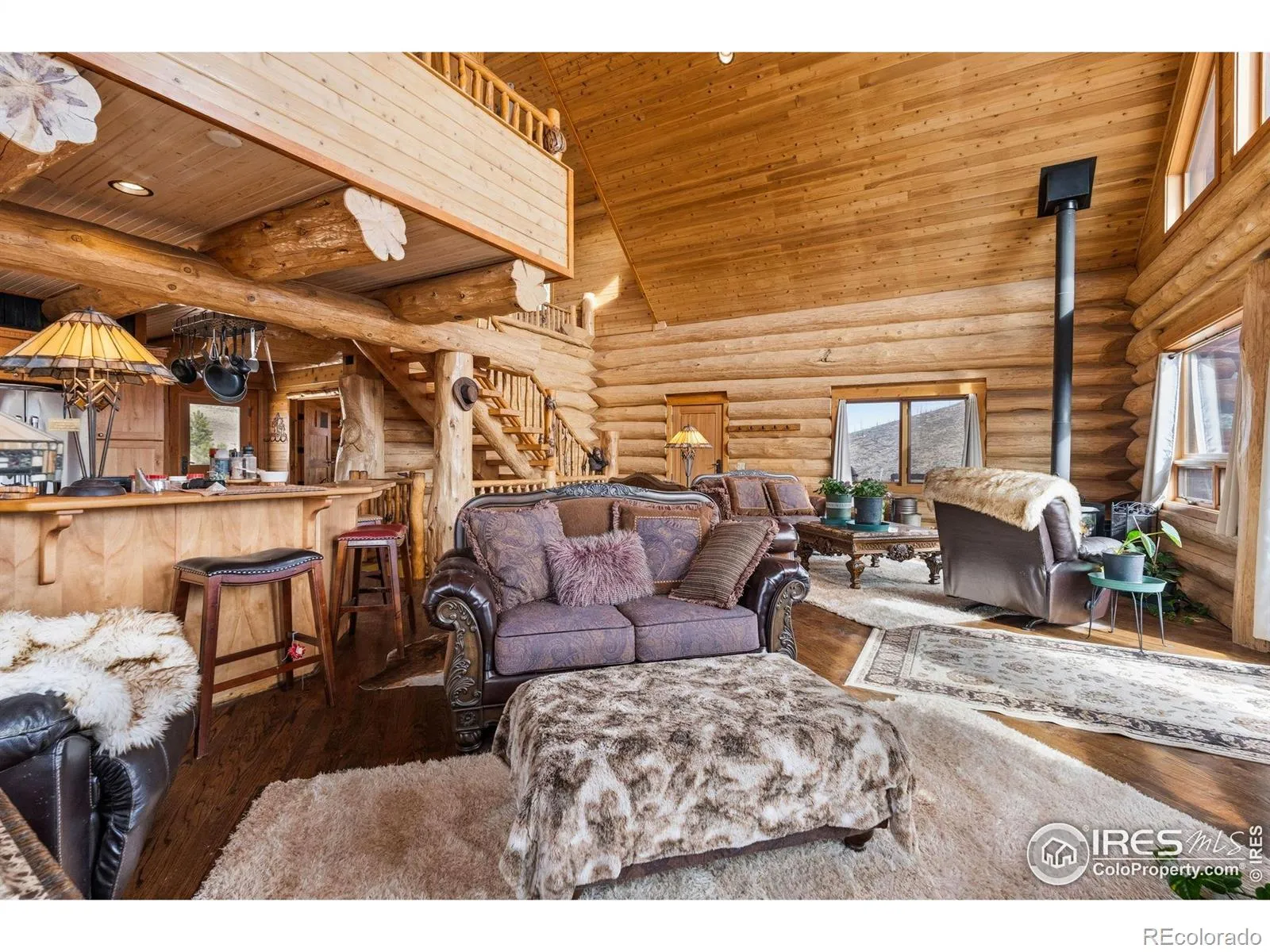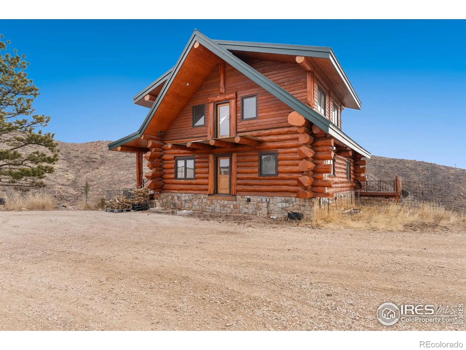 Situated on a private 40-acre parcel and surrounded on three sides by Roosevelt National Forest, this beautifully appointed custom log home offers an extraordinary blend of privacy, craftsmanship, and breathtaking natural beauty. Perfectly positioned with a picturesque private pond providing a peaceful setting and attracting abundant wildlife and the majestic Mummy Range Mountains, this property delivers a true Colorado mountain living experience. Inside, impeccable craftsmanship is showcased by soaring 24-foot cathedral ceilings, warm natural wood finishes, and expansive windows that frame the stunning landscape. The thoughtfully designed layout includes a spacious walk-out basement, providing additional living space and seamless access to the outdoors. The kitchen features stainless steel appliances and maple cabinetry, creating both style and functionality for everyday living or entertaining. Step outside onto the inviting wrap-around porch, the perfect place to take in peaceful mountain mornings, wildlife sightings, and unforgettable sunsets. Additional highlights include a 1,400 sq. ft. oversized detached garage, offering plenty of space for vehicles, recreational gear, or a workshop. For added flexibility, the main-level dining room could easily be converted into a third main-level bedroom, allowing buyers to customize the home to suit their needs. This rare property combines refined mountain living with unmatched privacy and panoramic views-an exceptional opportunity to own a truly special piece of Northern Colorado.