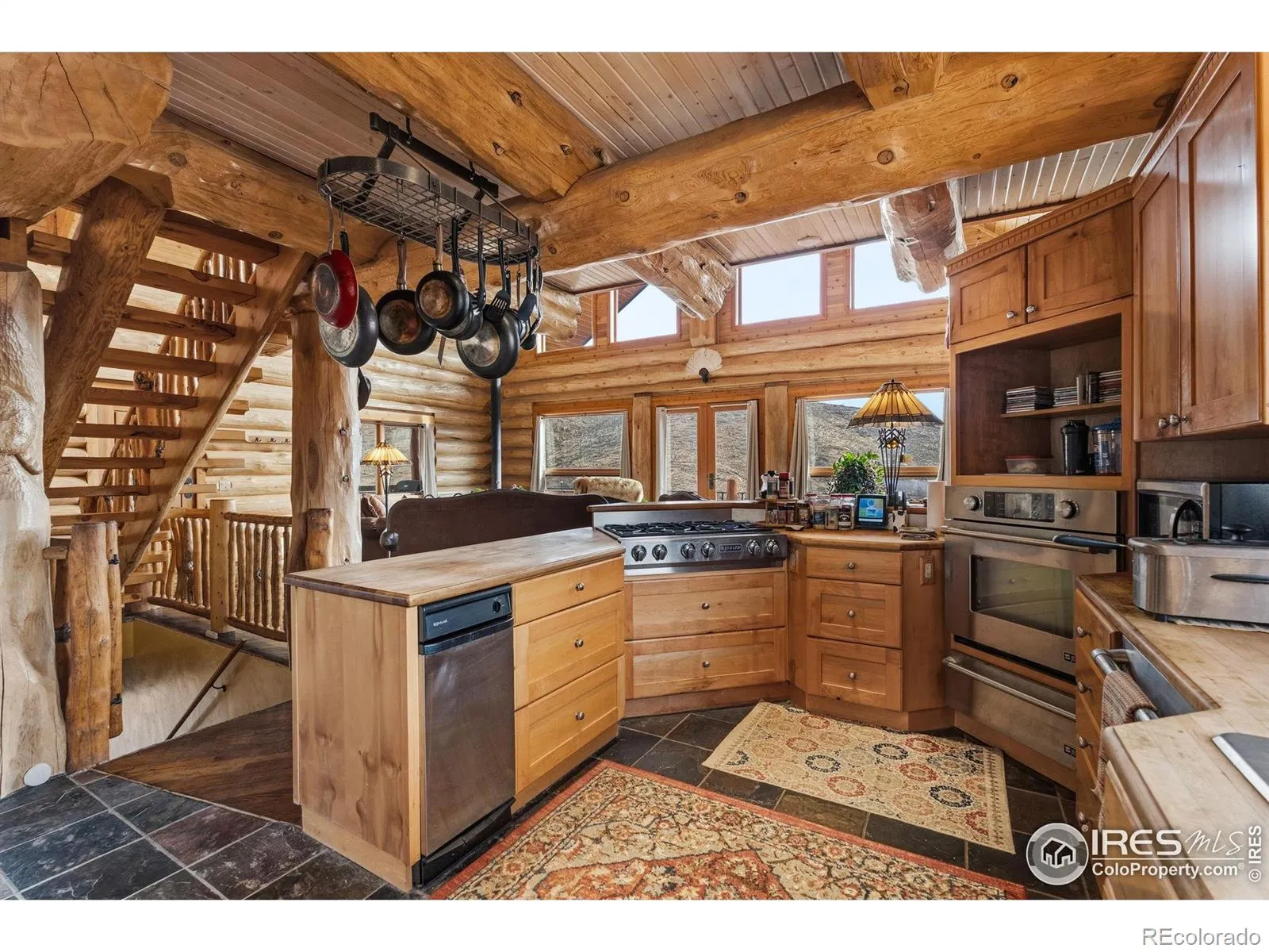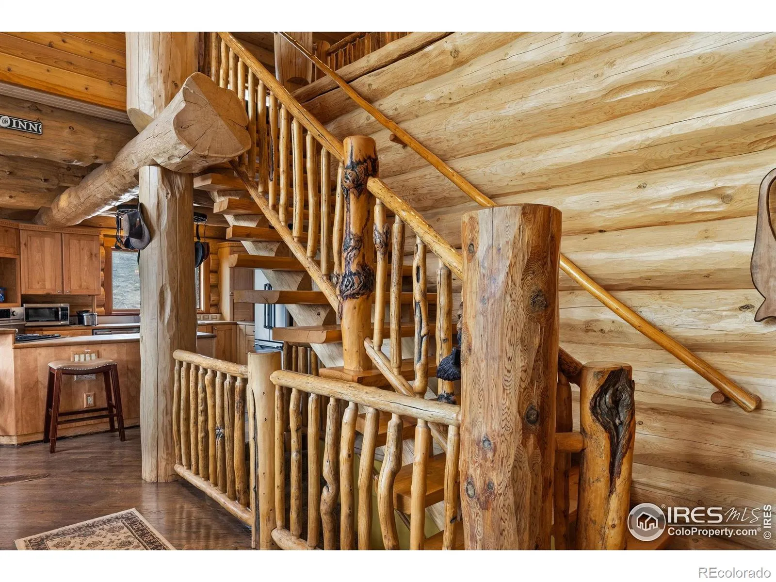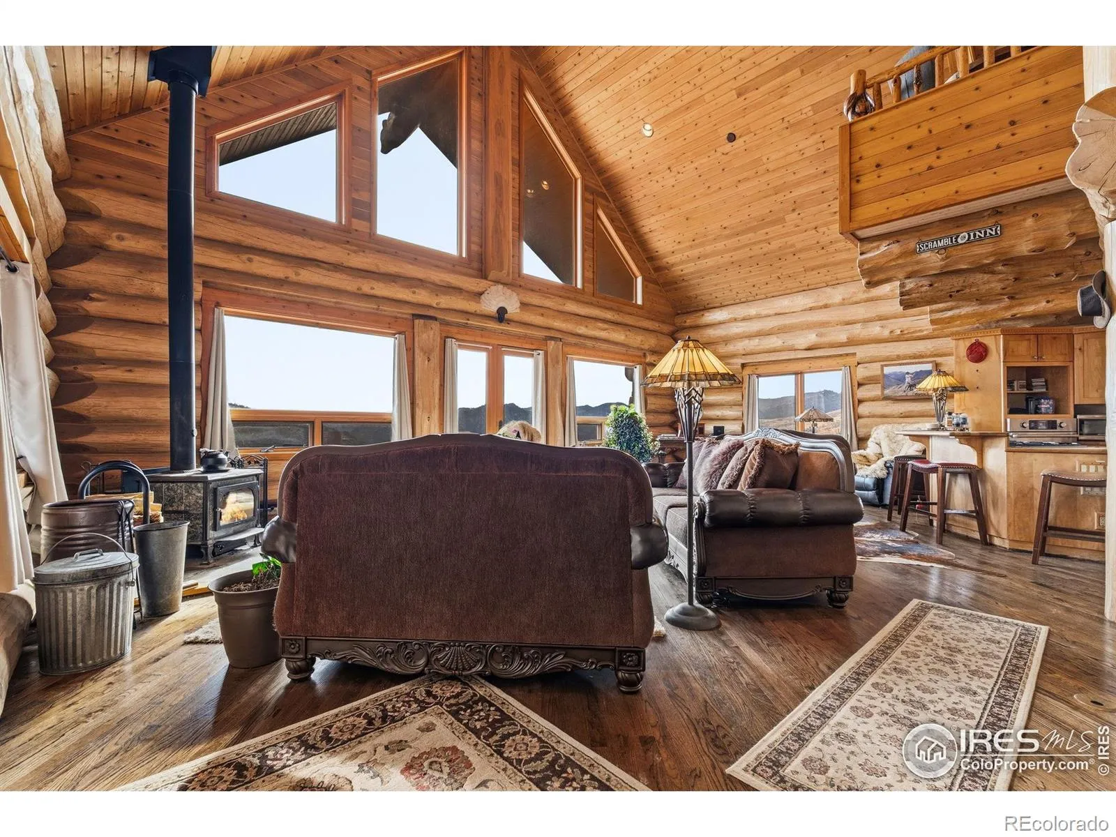 Situated on a private 40-acre parcel and surrounded on three sides by Roosevelt National Forest, this beautifully appointed custom log home offers an extraordinary blend of privacy, craftsmanship, and breathtaking natural beauty. Perfectly positioned with a picturesque private pond providing a peaceful setting and attracting abundant wildlife and the majestic Mummy Range Mountains, this property delivers a true Colorado mountain living experience. Inside, impeccable craftsmanship is showcased by soaring 24-foot cathedral ceilings, warm natural wood finishes, and expansive windows that frame the stunning landscape. The thoughtfully designed layout includes a spacious walk-out basement, providing additional living space and seamless access to the outdoors. The kitchen features stainless steel appliances and maple cabinetry, creating both style and functionality for everyday living or entertaining. Step outside onto the inviting wrap-around porch, the perfect place to take in peaceful mountain mornings, wildlife sightings, and unforgettable sunsets. Additional highlights include a 1,400 sq. ft. oversized detached garage, offering plenty of space for vehicles, recreational gear, or a workshop. For added flexibility, the main-level dining room could easily be converted into a third main-level bedroom, allowing buyers to customize the home to suit their needs. This rare property combines refined mountain living with unmatched privacy and panoramic views-an exceptional opportunity to own a truly special piece of Northern Colorado.