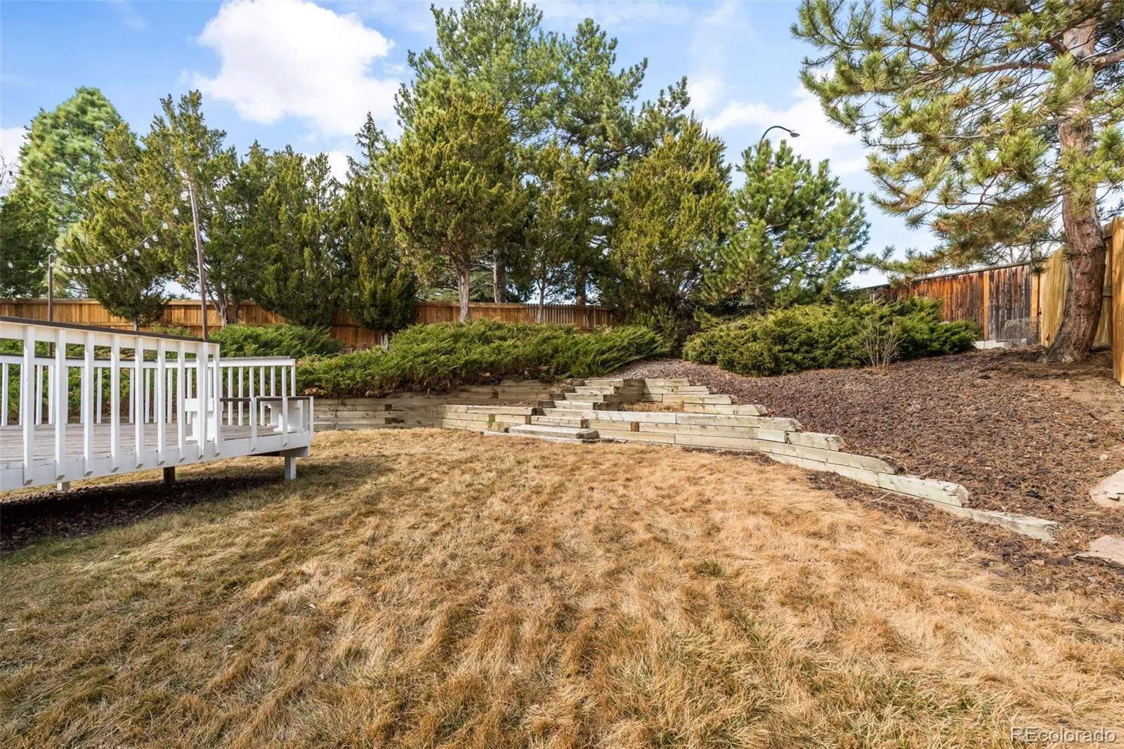 Upstairs, the vaulted primary bedroom offers an impressive sense of space and natural light, providing a peaceful retreat at the end of the day. Step outside to one of the home’s most special features: a large elevated deck overlooking a spacious tiered backyard surrounded by mature trees and landscaping. With built-in seating and string lights overhead, the space is perfect for summer dinners, morning coffee, and evenings under the Colorado sky. The basement offers incredible flexibility, currently used as a home gym with potential for additional living space, a future bedroom, and bathroom with existing rough-ins. Residents enjoy walkable access to trails, the community pool, a neighborhood fishing pond, grocery stores, Starbucks, The Brunch House, and local favorite G’s Tacos. Just minutes away, Standley Lake Regional Park offers paddleboarding, kayaking, scenic trails, and beautiful sunsets. With easy access to both Denver and Boulder and a welcoming neighborhood known for friendly neighbors and gatherings, this home offers the ideal blend of comfort, lifestyle, and location.