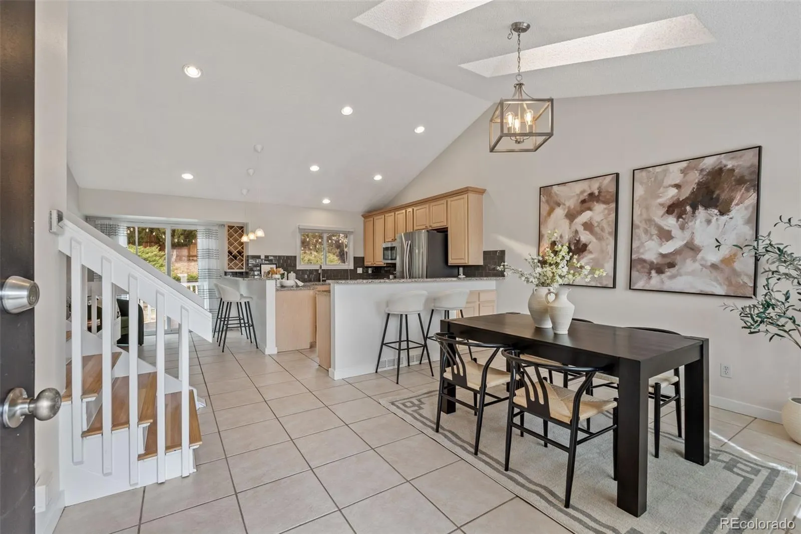 Tucked into a quiet cul-de-sac within a cul-de-sac, this beautifully maintained Westminster home offers the perfect balance of natural light, comfortable living spaces, and a backyard designed for enjoying Colorado’s outdoor lifestyle. Step inside to soaring ceilings and skylights that fill the home with natural light throughout the day. The open layout connects the dining area, kitchen, and living spaces in a bright, inviting way. The kitchen sits at the heart of the home, featuring granite countertops, stainless steel appliances, abundant cabinetry, and bar seating that makes entertaining easy and everyday living effortless. Downstairs, the cozy living room centers around a beautiful white brick wood-burning fireplace, creating the perfect space for movie nights and relaxing Colorado evenings.
