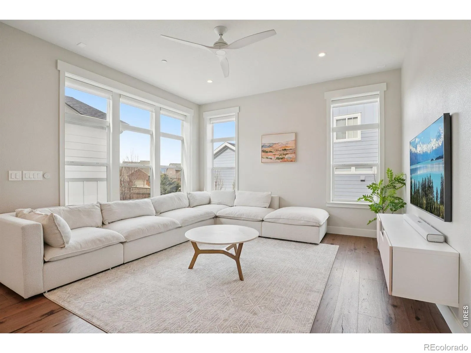 Perfectly perched at the highest point of Hyland Village and just steps from the community pool, this refined 4-bedroom plus office, 3.5-bath residence captures the ideal balance of style, space, and smart design. From the welcoming front porch, step into elegantly finished, light-filled interiors with extended hardwood floors, 9-foot ceilings, and a modern layout that feels both open and sophisticated. The front office overlooks the neighborhood, offering inspiring views and natural light that create a truly elevated workspace. A formal dining room and butler’s pantry connect seamlessly to the chef’s kitchen-complete with a large island, generous storage, quartz countertops, a dine-in nook, and a built-in desk. High-end stainless appliances, double ovens, and a gas cooktop anchor this gourmet space, which flows effortlessly into an inviting family room overlooking one of the largest, most private yards in the neighborhood. Upstairs, the serene primary suite offers a spa-inspired bath with freestanding soaking tub, frameless glass shower, and a custom built-in closet system, while two additional bedrooms share a beautifully appointed full bath. The finished basement-with 10-foot ceilings-includes a spacious rec room with integrated Bowers & Wilkins surround sound, a private guest suite, and flexible space for fitness or play. This LEED-certified home is further distinguished by an owned Tesla solar system, dual tankless water heaters, comprehensive smart home amenities (including app-controlled locks, lighting, blinds, fans, garage door, speakers, and ethernet wiring in most rooms), plus an upgraded oversized 2.5-car garage with EV charging. Set on an elevated prime lot near shopping, dining, and entertainment-and walking distance to the farmers market, open space, and bike trail system-this Hyland Village home delivers an elevated luxury lifestyle that is truly rare to find.