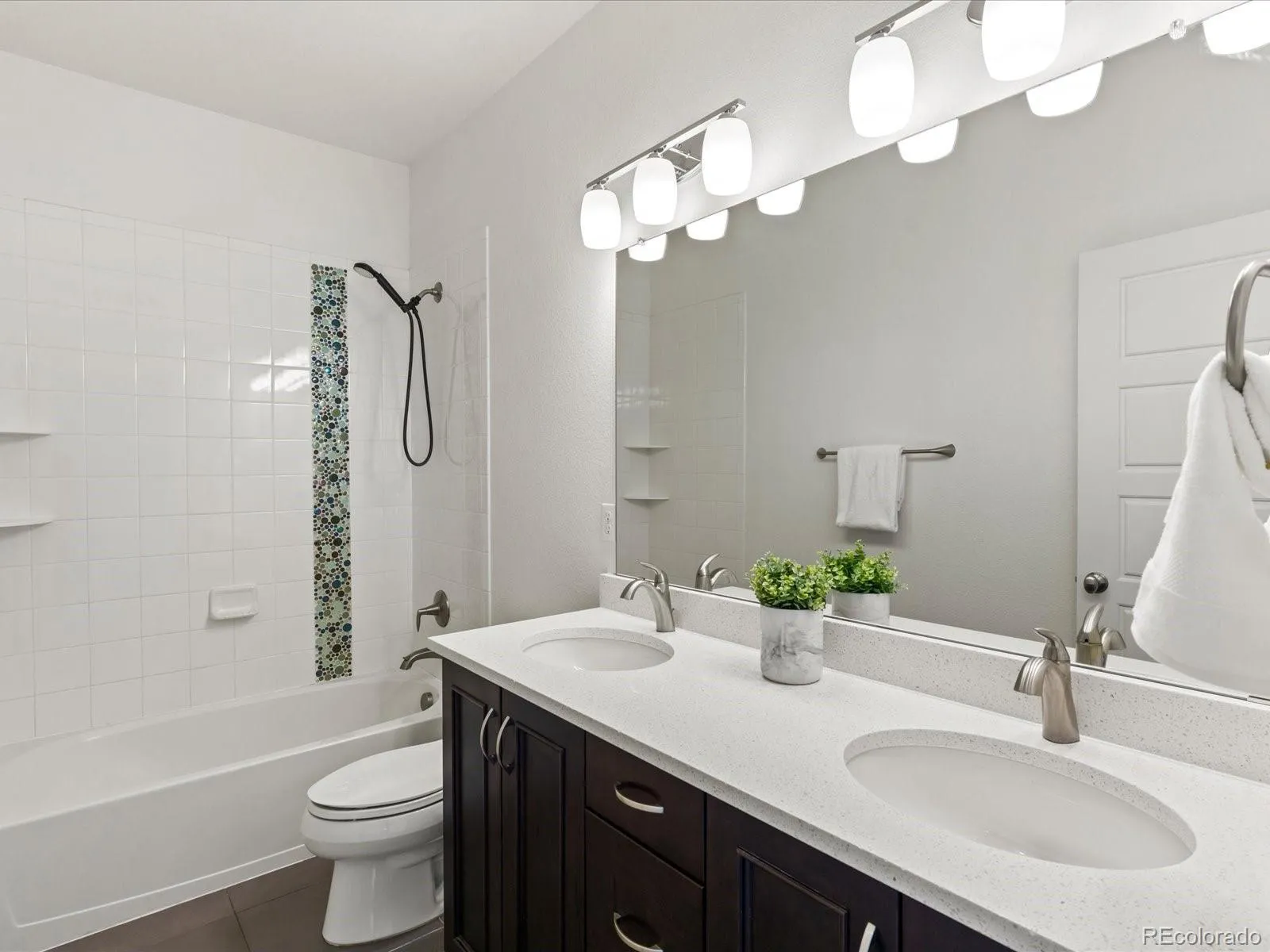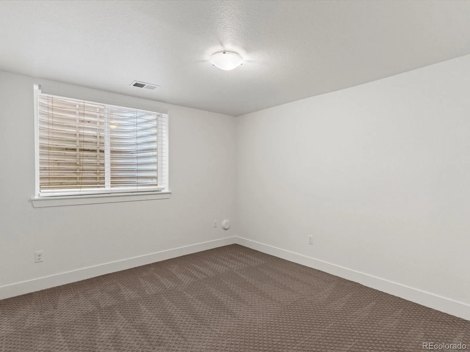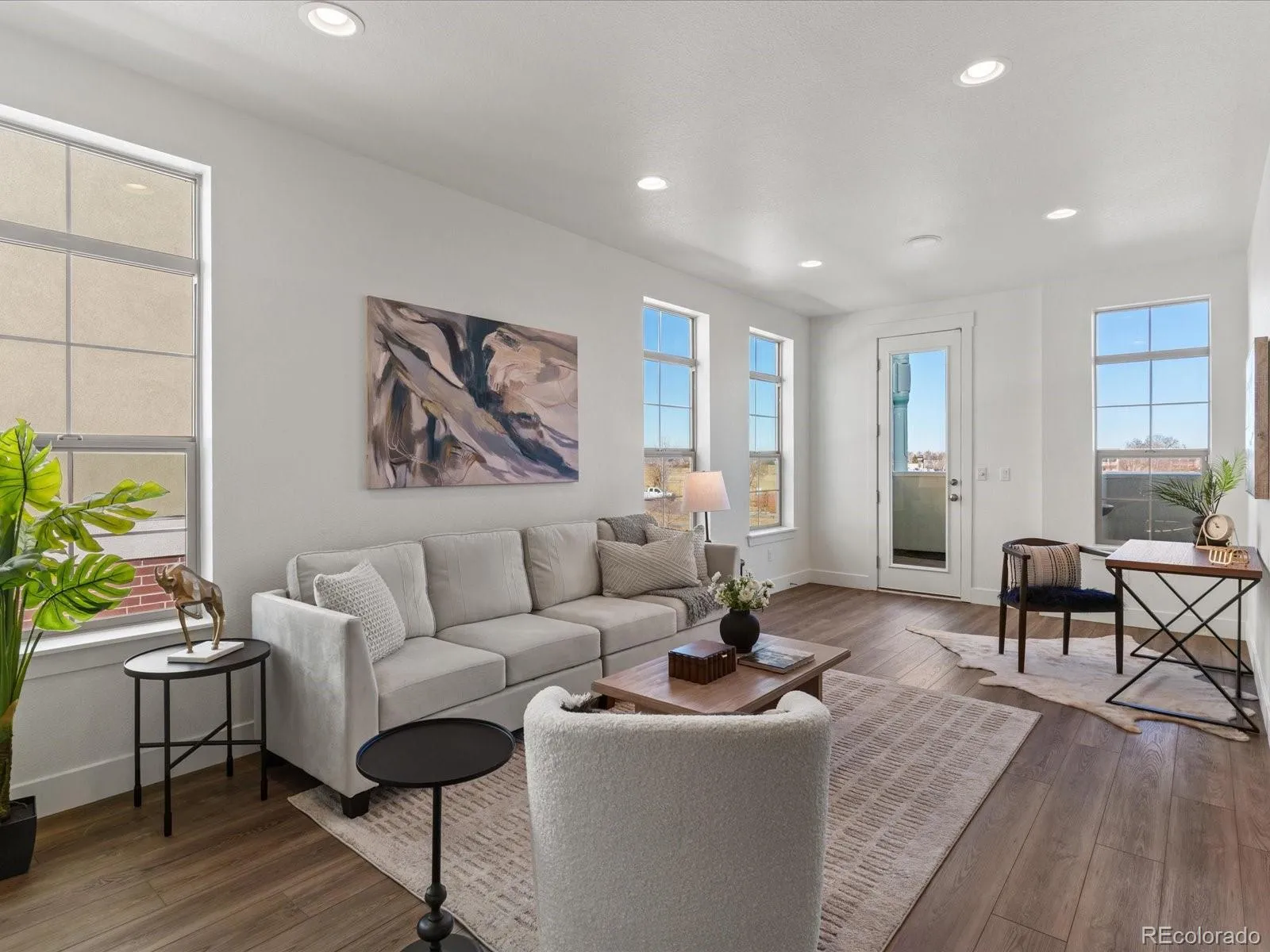 Beautifully designed and thoughtfully upgraded, this 4 bedroom, 3.5 bath townhome by Wonderland Homes blends modern elegance with effortless functionality in one of Central Park’s most desirable locations. The main-level primary suite offers comfort and convenience, featuring a luxurious 5-piece bath with a soaking tub, frameless glass shower, dual sink vanity, and a spacious walk-in closet. The open-concept living area is bright and inviting with 10-foot ceilings, expansive windows, and seamless flow between the kitchen and living spaces. The chef-inspired kitchen showcases white quartz countertops, a marble backsplash, soft-close cabinetry, and premium BOSCH stainless steel appliances, creating a sleek yet timeless aesthetic. Fresh interior paint enhances the light and airy feel throughout the home. The dining area overlooks the backyard, while the living room centers around a cozy gas fireplace, perfect for Colorado evenings. Upstairs, a generous loft provides flexible living space—ideal for a home office, playroom, or lounge—and opens to a private second-floor patio with sweeping views of the 80-acre Central Park and the mountains. Two additional bedrooms and a full bath complete the upper level. The finished basement is designed for entertainment, fully equipped for a media room with an included projector and screen, along with a large bedroom and full bath. This home is wired for data throughout and includes owned solar panels and a Tesla Powerwall, offering energy efficiency and peace of mind. The private backyard features a spacious patio, low-maintenance turf, and direct access to the attached 2-car garage. Enjoy an unbeatable location just minutes from Stanley Marketplace, Shops at Eastbridge, Central Park Recreation Center, and convenient access to the RTD A Line for an easy commute to downtown or DIA. Recent exterior upgrades include a new roof and stucco.