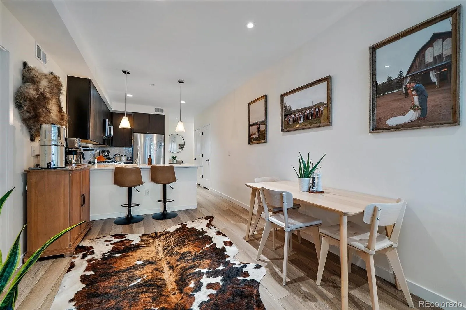 Live at the heart of Olde Town Arvada — where trendy meets timeless. This rare Grandview condo puts you steps from everything: coffee shops, brunch spots, breweries, yoga, boutiques, the G-Line, festivals, farmers markets, and those iconic brick-lined streets. Park in your secure garage, hop into the elevator, and you’re home in seconds. Inside, natural light pours through a wall of windows, opening to your oversized Grandview balcony with postcard views of the foothills, the water tower, and the Olde Town clock tower. It’s the backdrop everyone dreams of — sunrise coffee, sunset wine, and all the people-watching in between. The open layout features one of the largest living areas in the building—perfect for entertaining. The kitchen offers trendy selections & upgrades, while luxury vinyl plank flooring runs throughout. The primary bedroom has a spacious ensuite with double sinks, a walk-in shower, and a generous closet. A full guest suite rounds out the floor plan. If you want walkability, views, urban energy, and a lock-and-leave lifestyle in one of Colorado’s most charming downtown districts, this one checks every box