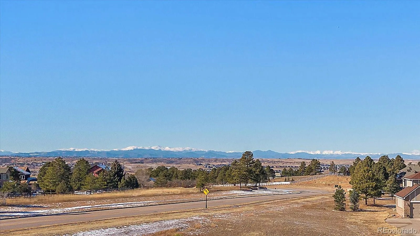 Want to enjoy Colorado to its fullest? This beautiful 4631-square foot, 4-bedroom, 3.5 bath contemporary home sits on 1.67 acres tucked into an oversized cul-de-sac, framed by towering Ponderosa pines, spruce, aspen, and maple trees and native as well as professional landscaping. The home sits at 6776 feet in elevation and the view of the Colorado mountains is spectacular, from Pikes Peak to Mount Blue Sky and further up the front range. Enter this home through the custom-made leaded glass front doors and be greeted by soaring vaulted ceilings and numerous large custom windows that flood the home with natural light and allow for breathtaking mountain views from almost every room in the home, as well as views of Bingham Lake to the north. The kitchen is the heart of the home with upgraded stainless steel appliances, quartz counters, and a stylish tile accent wall. The kitchen is open to the large family and dining room areas, as well as a separate kitchen nook, creating a generous open space perfect for casual living and easy entertaining. The primary suite is large and includes a separate but easily accessible office space, a beautifully tiled fireplace, and a custom, spa-like bathroom complete with heated floors and easy access to the hot tub just one step outside the primary bathroom, on a deck that spans the entire length of the home. Upstairs is a generously sized loft/library and a very private secondary bedroom and en-suite bath. The walk-out basement (yes, you can see the mountains from rooms in the basement!) has a wet bar, an expansive game room for family and friends fun, two additional bedrooms, a full bath, and the perfect space for a future wine cellar. An easily accessible cart path in the neighborhood leads to the Pinery Country Club’s 6th hole (out of 27) and it’s a straight shot to the Pinery club house. The golf cart is negotiable!