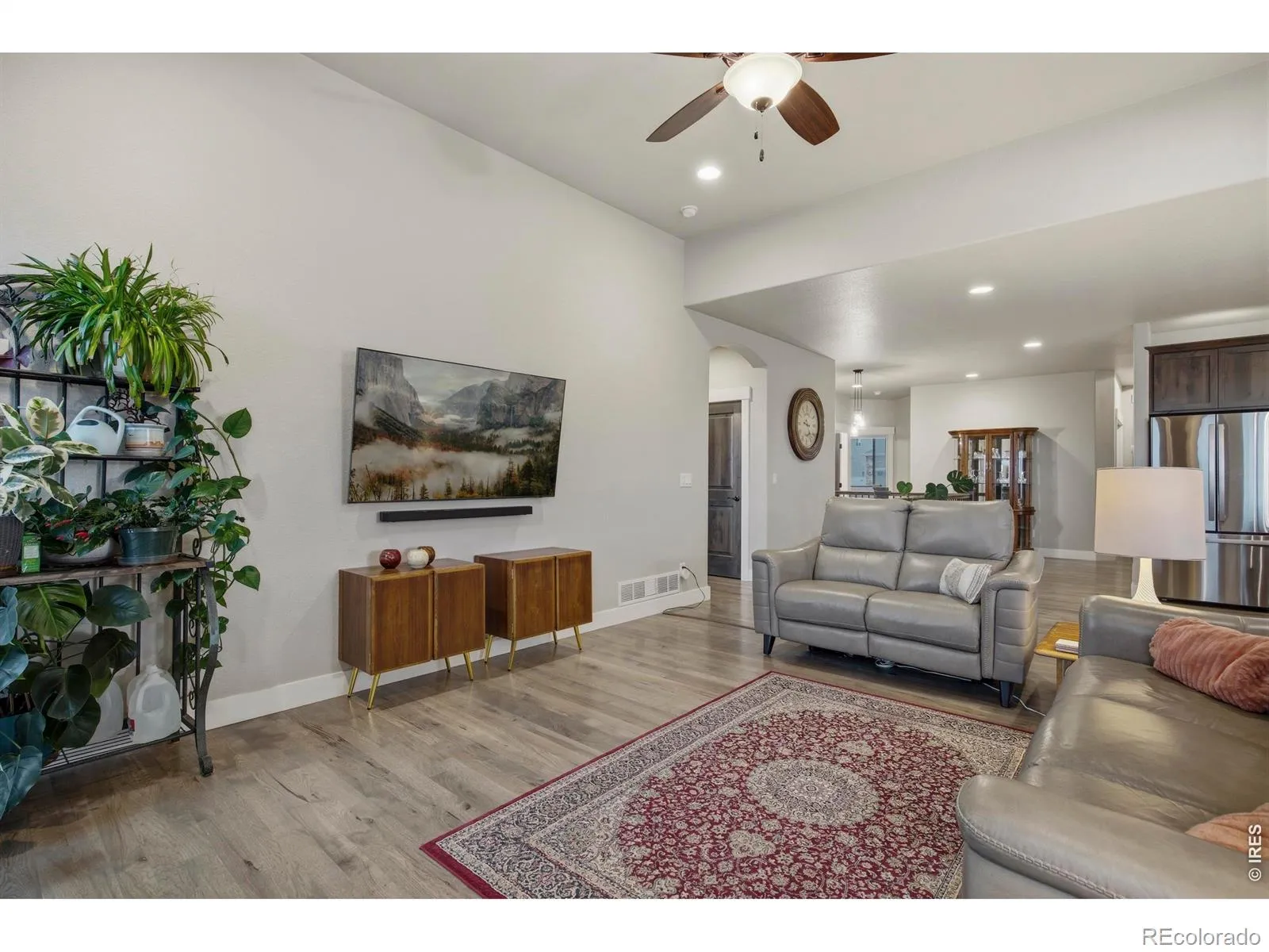 Welcome to 1827 Castle Hill Dr, flexibly located just off Harmony Road, close to both Fort Collins and the heart of Windsor. Thoughtfully upgraded ranch style home offering beautiful finishes and stunning mountain views. The upgraded kitchen is the heart of the home, featuring premium appliances, custom cabinetry, sleek countertops, and generous prep space – perfect for entertaining or creating gourmet meals at home. The open-concept layout flows seamlessly into the living and dining areas, creating an inviting atmosphere for gatherings and abundant natural light. Step outside to the well-landscaped backyard complete with a hot tub and water feature, where you’ll enjoy mountain views! Whether you’re hosting summer barbecues, relaxing with your morning coffee, or unwinding at sunset, this outdoor space offers the perfect retreat. Additional highlights include owned solar and 2×6 construction for energy efficiency and long-term savings, a tandem three-car garage plus a full unfinished basement with many options, including future expansion.