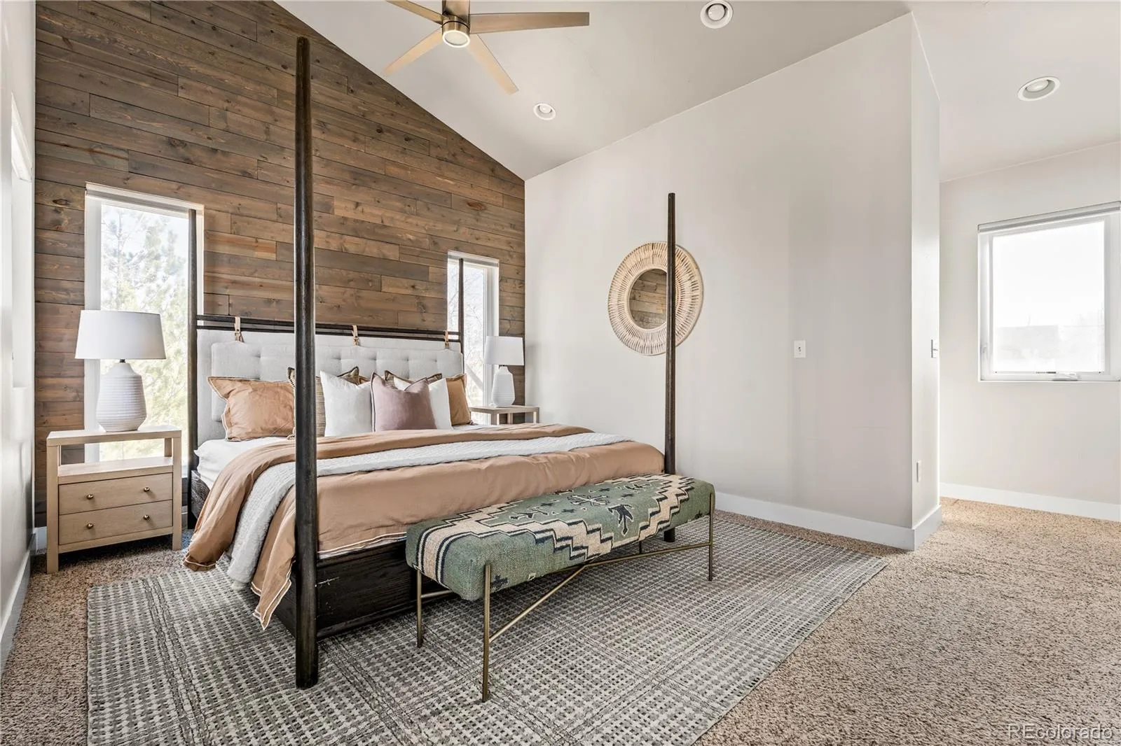 : Pantry, High Ceilings, Open Floorplan, Quartz Counters, Kitchen Island, Eat-in Kitchen, Vaulted Ceiling(s), Ceiling Fan(s), Primary Suite, Five Piece Bath, Walk-In Closet(s)