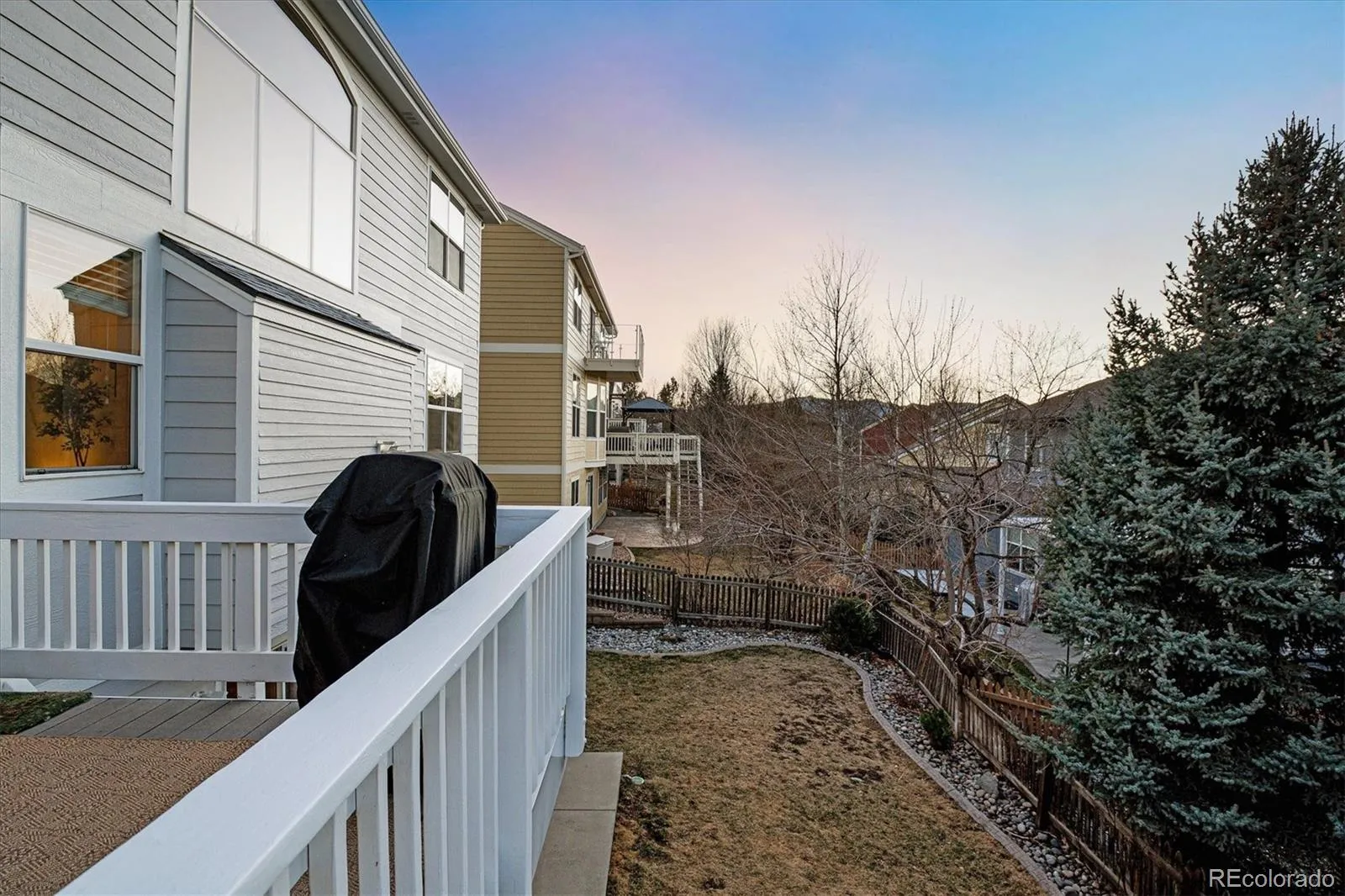 Rare park-front home with mountain views in the Village of Five Parks—one of Arvada’s most sought-after communities. Perfectly positioned overlooking Beeman Park, this stunning walkout 2-story offers the Colorado lifestyle luxury buyers crave with walkability, open space, and top-rated JeffCo schools. Relax on the covered front porch while taking in sweeping park, just steps from Meiklejohn Elementary. Inside, a bright open-concept floor plan showcases extensive hardwood floors, soaring 18′ ceilings, and abundant natural light. The elegant living and dining spaces create an inviting setting for gatherings, while the spacious family room features a cozy gas fireplace, 18′ ceilings and seamless connection to the heart of the home. The fully renovated chef’s kitchen is designed for entertaining with a massive island seating eight, Quartzite Leathered Taj Mahal slab countertops, stainless appliances, coffee nook, hidden outlets, pantry, and extensive cabinetry. Sliding doors open to a private backyard and deck with outdoor speakers, perfect for indoor-outdoor Colorado living with access to the finished basement. Upstairs, the luxurious primary suite offers a spa-inspired 5-piece bath with soaking tub, glass shower, dual vanities plus his & hers walk-in closets. Wake to the stunning mountain views! 3 additional bedrooms & a versatile loft workspace with mountain views provide flexible living for today’s lifestyle. The finished walkout basement expands the home with a guest suite or office, ¾ bath, kitchenette/wet bar, and generous recreation space—ideal for entertaining or multi-generational living. Enjoy a rare park-facing location, south-facing driveway, and private fenced yard. Residents of Five Parks enjoy community pool, parks, playgrounds, trails, and easy access to Standley Lake recreation, walk to 4 dining options like Lot One or Jack’s, and commuting to Denver or Boulder with ease. Luxury, lifestyle, and location come together in one exceptional Five Parks home.