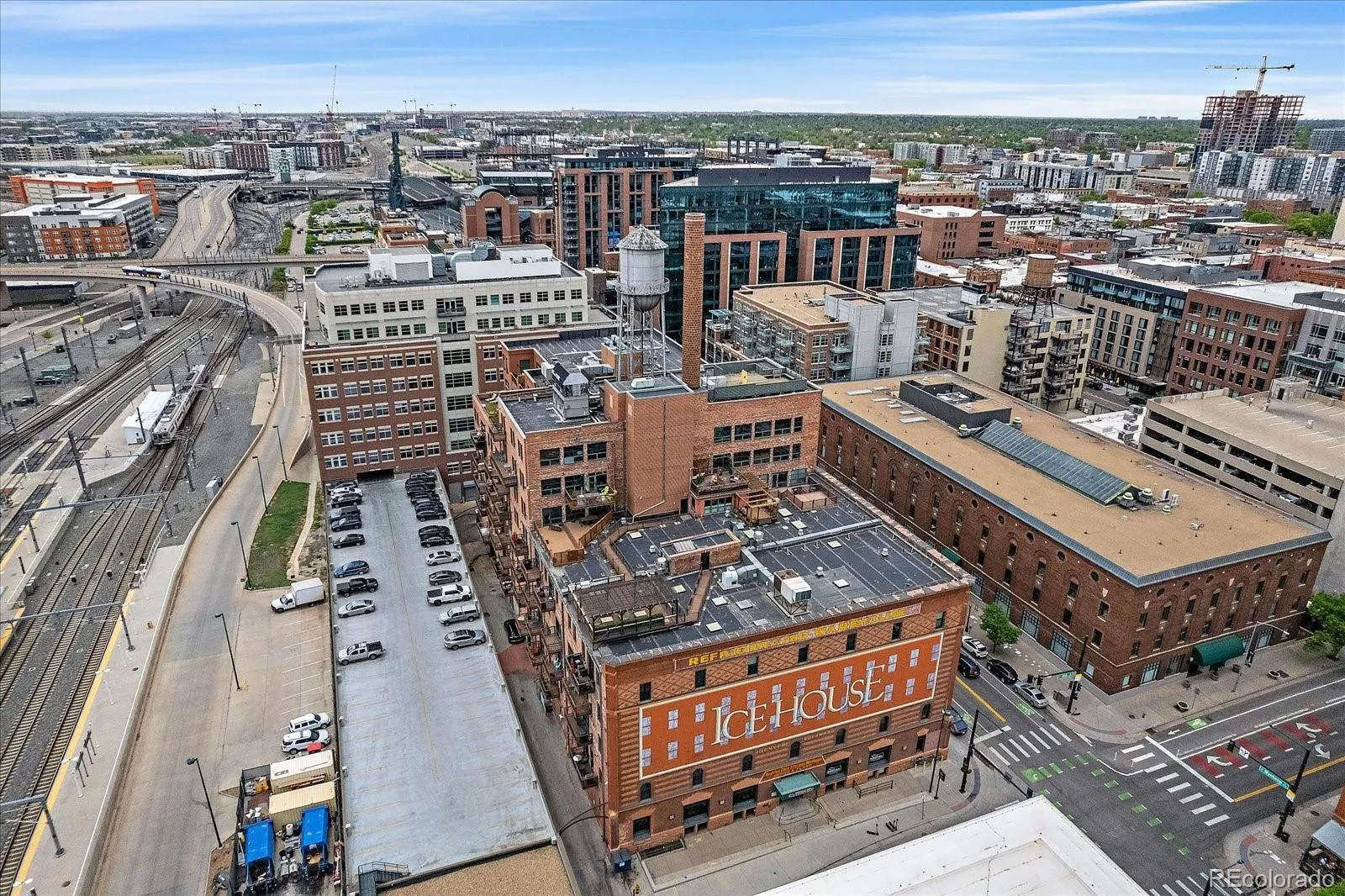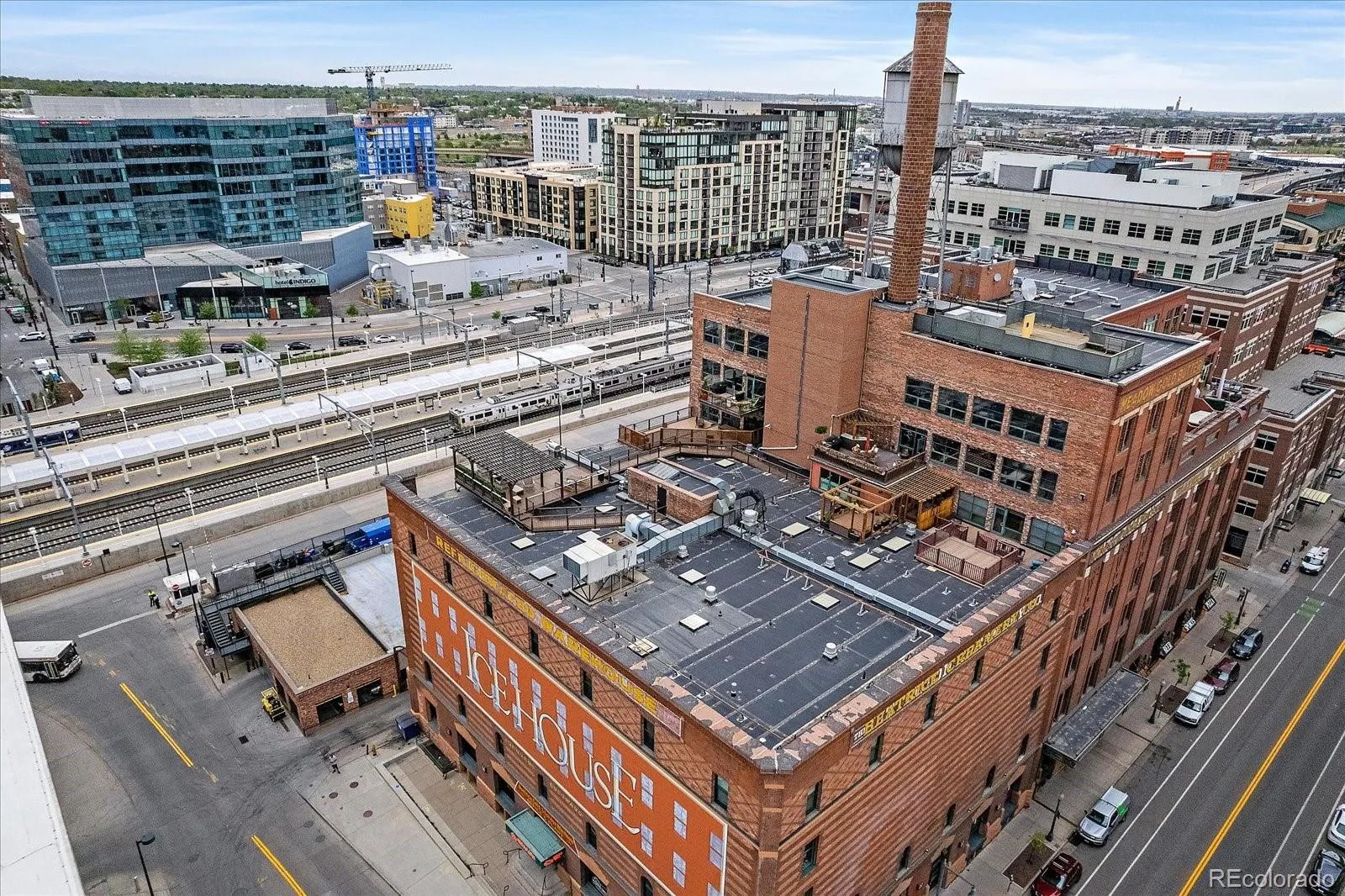 Stylish historic loft in the iconic Ice House Lofts in the heart of LoDo. This timber-and-beam residence features 12’ ceilings, exposed brick, hardwood floors, and oversized windows with afternoon sun and views of Union Station and the mountains. Designer-updated kitchen with quartz countertops, subway tile backsplash, stainless appliances, and center island. Custom closet, in-unit washer/dryer, Nest thermostat, and travertine bath. Includes deeded parking and storage. Building amenities include fitness center and fully loaded rooftop deck – perfect for your Rockies Opening Day Party! Unbeatable location one block to Denver Union Station and two blocks to Coors Field.