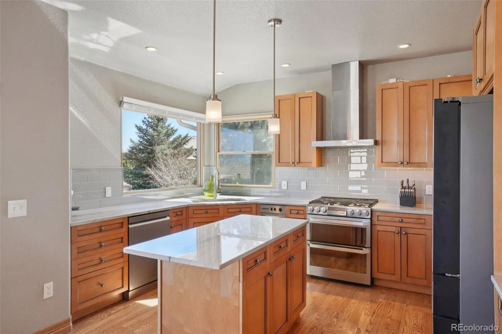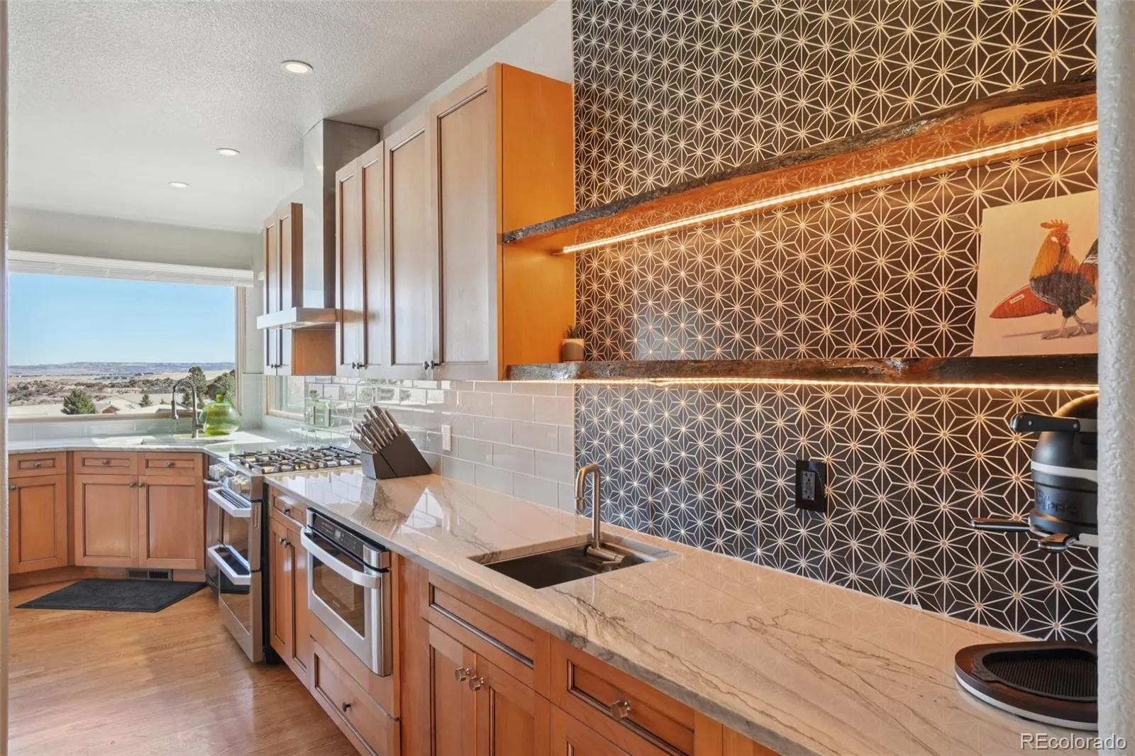Inside, 4,316 square feet unfold with hardwood floors, a spacious main-floor primary suite, and a flexible secondary bedroom perfect for guests or a home office. The 2025 updated kitchen shines with stone countertops, gas range, custom cabinetry, and picture windows that frame the view.