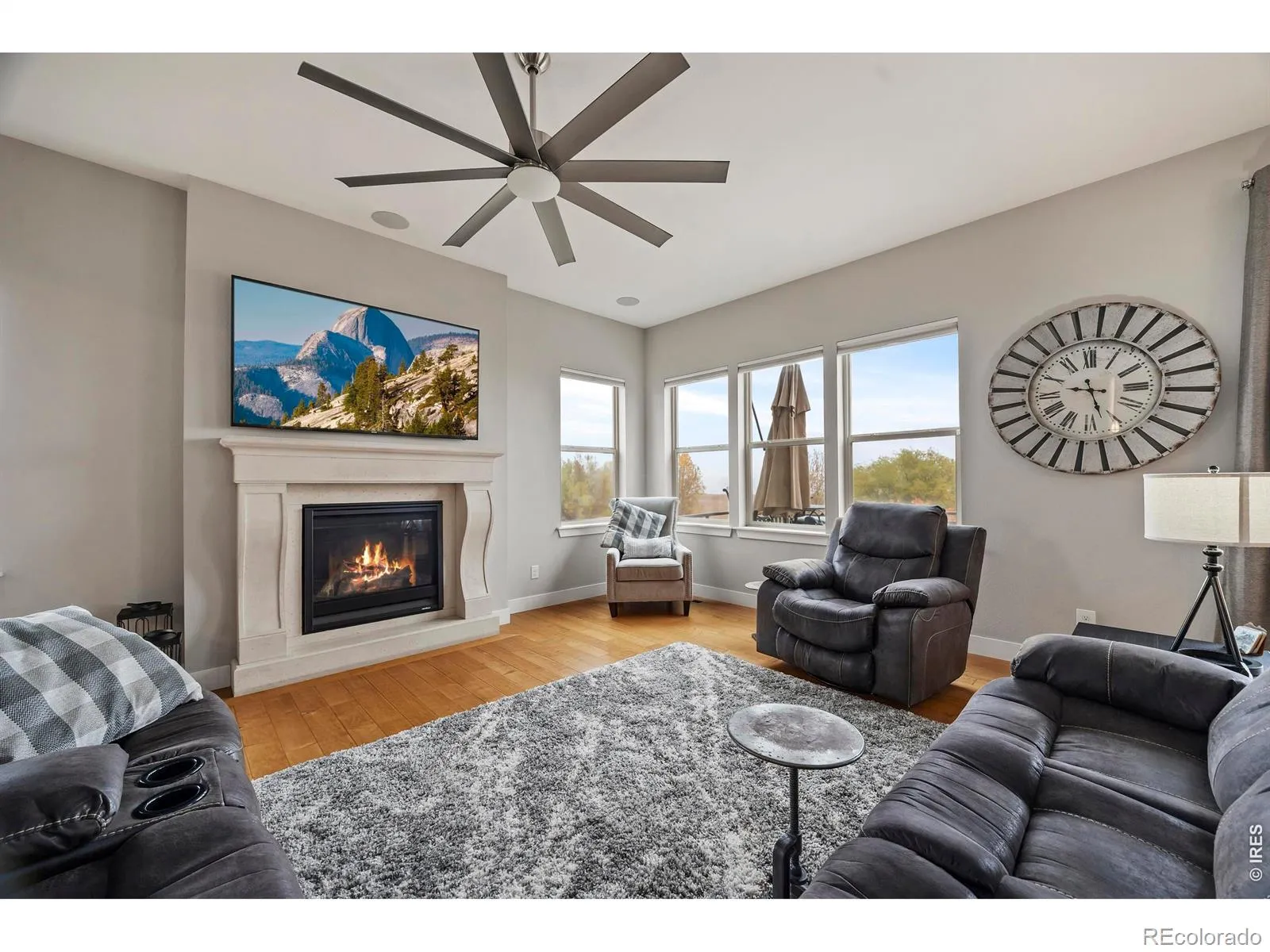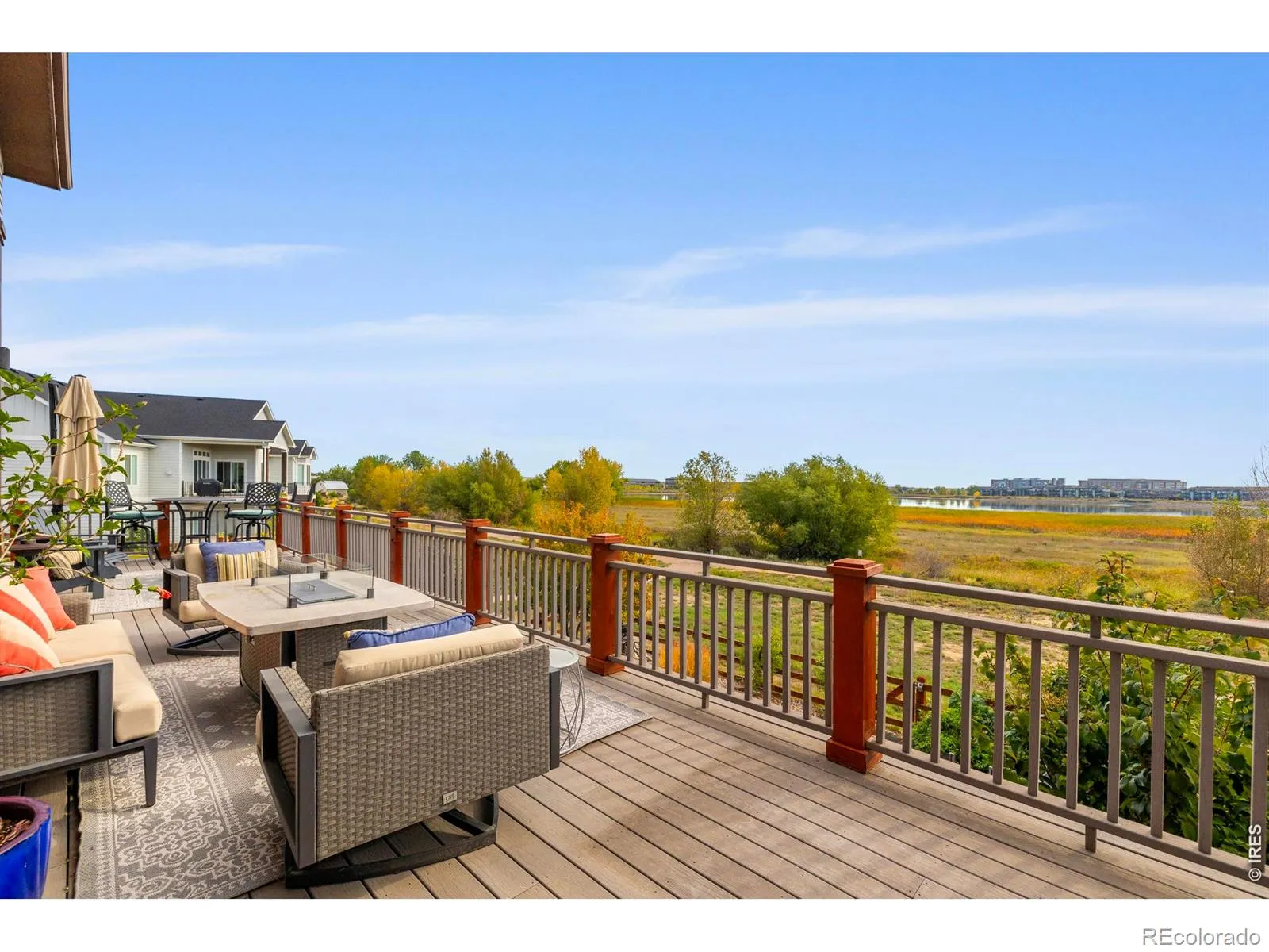 Welcome to your dream lakefront retreat in one of Loveland’s most sought-after communities at the Lakes at Centerra. This impressive 6 bedroom, 5 bathroom home offers a rare blend of waterfront living, mountain views, and everyday convenience that Colorado enthusiasts truly appreciate. The main floor features an oversized gourmet kitchen, dining nook, expansive island and an abundance of kitchen cabinetry. Built by Wonderland Homes, you will notice high end qualify finishes and home is pre-wired to be a smart home. The main floor flexible office space could serve as a bedroom in the future if the bathroom was converted should one desire a main floor ensuite, ideal for guests or multigenerational living. Upstairs, 4 generous bedrooms plus a large and bright loft provides plenty of room to spread out comfortably. The outdoor spaces are where this home truly shines. An oversized deck spans the full length of the house, delivering stunning lake views that transform every morning into something special. The walkout basement opens to a lower patio designed for entertaining, complete with an outdoor kitchen and bar, a relaxing water feature, and a firepit area perfect for gathering with friends and family. Inside, the finished basement includes a wet bar for year-round hosting with a cozy 2nd fireplace and an additional bedroom ensuite, perfect for guests. The front of the home features mountain views, while an adjacent greenbelt provides a welcome layer of natural privacy. Location adds even more appeal with convenient access to I-25 and the Highway 34 corridor puts shopping, dining, and daily necessities well within reach. This lakefront gem combines comfort, beauty, and location in a package that rarely comes to market.