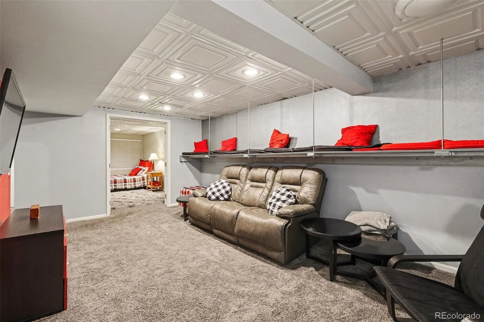 The fully finished basement delivers a truly memorable 1950’s diner-themed gathering space that is perfect for movie nights, game nights, or hosting friends. This media room is complete with bar, refrigerator, a custom floating lounge bench. All 50s furniture and a mounted TV included in sale. The basement also features a separate bedroom, full bathroom and laundry room.