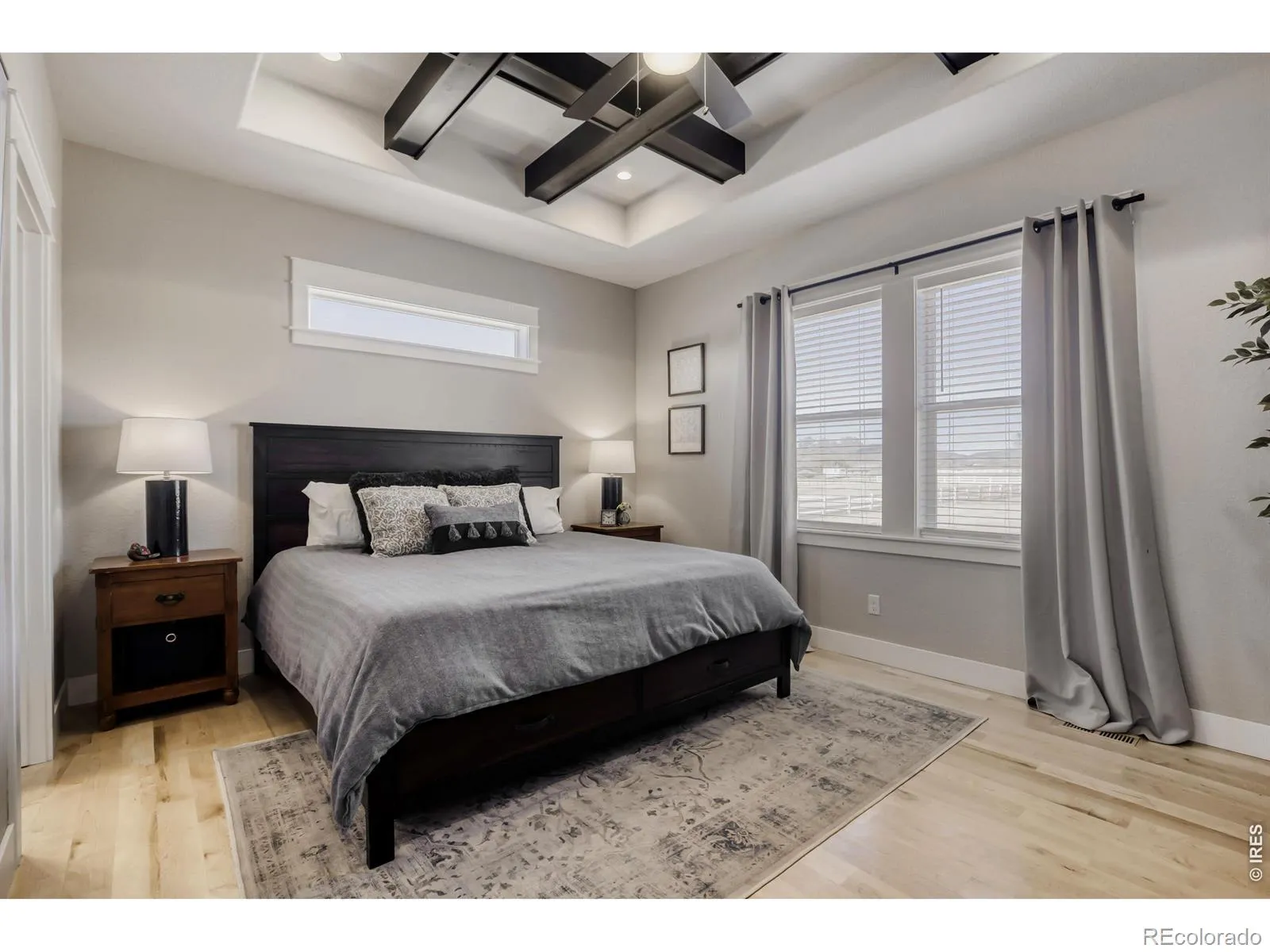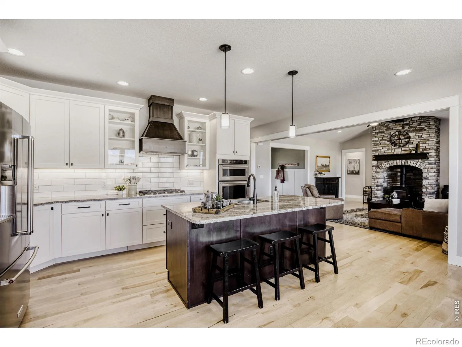Stunning Modern Farmhouse on 3 acres in the highly desirable Green Valley Estates. Experience the perfect blend of modern luxury and peaceful country living in this exceptional custom-built home in 2021 with 5 bedrooms, 3 bathrooms and oversized 4 car garage on 3 sprawling acres with breathtaking panoramic mountain views. The main floor welcomes you with warm maple hardwood floors, tall vaulted/beamed ceilings and an abundance of natural light. The heart of the home is the gourmet kitchen, featuring custom cabinetry, granite c-tops, and premium stainless steel appliances. It flows seamlessly into the large dining room with beamed ceiling and the living room, where a cozy wood-burning stove with a floor-to-ceiling stone surround serves as a focal point. The main level offers a total of 3 bedrooms and 2 bathrooms, including the primary suite with exquisite private bathroom suite and walk-in closet with built-in shelving. The mudroom and large laundry room near garage entrance provides plenty of space with cabinets and shelves. The fully finished basement is designed for fun and functionality. It boasts a large recreation room with stylish wet bar, 2 additional bedrooms and 1 bathroom along with a large storage pantry and bonus room. The oversized 4-car garage is a dream for hobbyists or car enthusiasts being fully finished, insulated, and heated, plus plenty of electrical power with 3 220V outlets. Step out onto the covered back porch to your outdoor oasis and enjoy the fresh air, mountain views and peaceful serenity. The home is surrounded by irrigated sod and the community provides plenty of flood irrigation for the fields. About 1 acre is fully fenced with loafing shed. There’s also a large fenced organic garden and chicken coup in backyard. Convenient location and nearby attractions include Devils Backbone open space, Big Thompson river, Carter Lake and golf courses. Don’t miss out on this rare opportunity to own a piece of Colorado paradise!