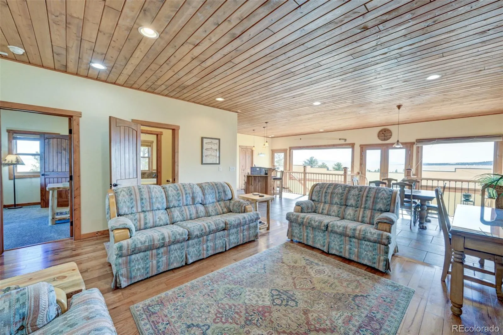 If you are looking for a special mountain residence or part time retreat, this home has it all! The property has 2 bedrooms, large living/dining room, large family room, spacious kitchen, many closets plus an office or bonus room with 2 bathrooms and comes fully furnished and move in ready. There are many features in the home like in floor radiant heating, instant hot water system, granite counters, and tongue and groove ceilings. The stucco exterior has a lot of character, and the walk out composite deck is spectacular for watching the red tail hawks soaring or other wildlife roaming the area like deer, elk, pronghorns, jackrabbits, cottontails, and blue birds. The kitchen features a double oven, gas range, separate electric cooktop, pantry, and an abundance of natural light. You will notice the very spacious 2 car long garage plus the 1,500 square feet detached workshop/garage. This shop is a wood workers’ dream and has multiple built in work benches, 220 outlets, and a large loft for extra storage along with a large overhead garage heater. several heat sources. There is a 2010 Kubota tractor that is handy for snow plowing or projects around the property. The lot boasts 5.25 acres with good tree coverage and spectacular views of Buffalo Peaks to the north and National Forest to the west. The 5-acre vacant lot next door is also available for purchase if you want to have an extra buffer. Ranch of the Rockies HOA includes central trash service, dog park, pavilion, and a stocked fishing reservoir for all property owners and guests. Colorado Springs and Denver are within two hours, and there is easy access to HWY 285/24. National Forest Access is within walking distance. You can enjoy hiking, biking, fishing, rafting on the Arkansas River, and exploring all within minutes of home. This is a very special destination in the heart of the Colorado Rockies. The property is gorgeous. Come check it out.