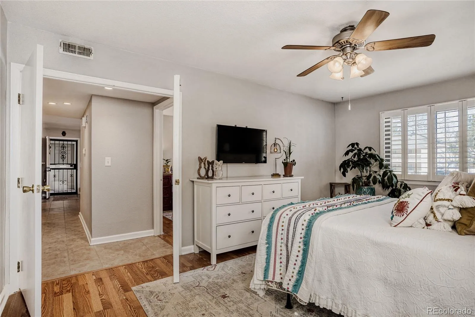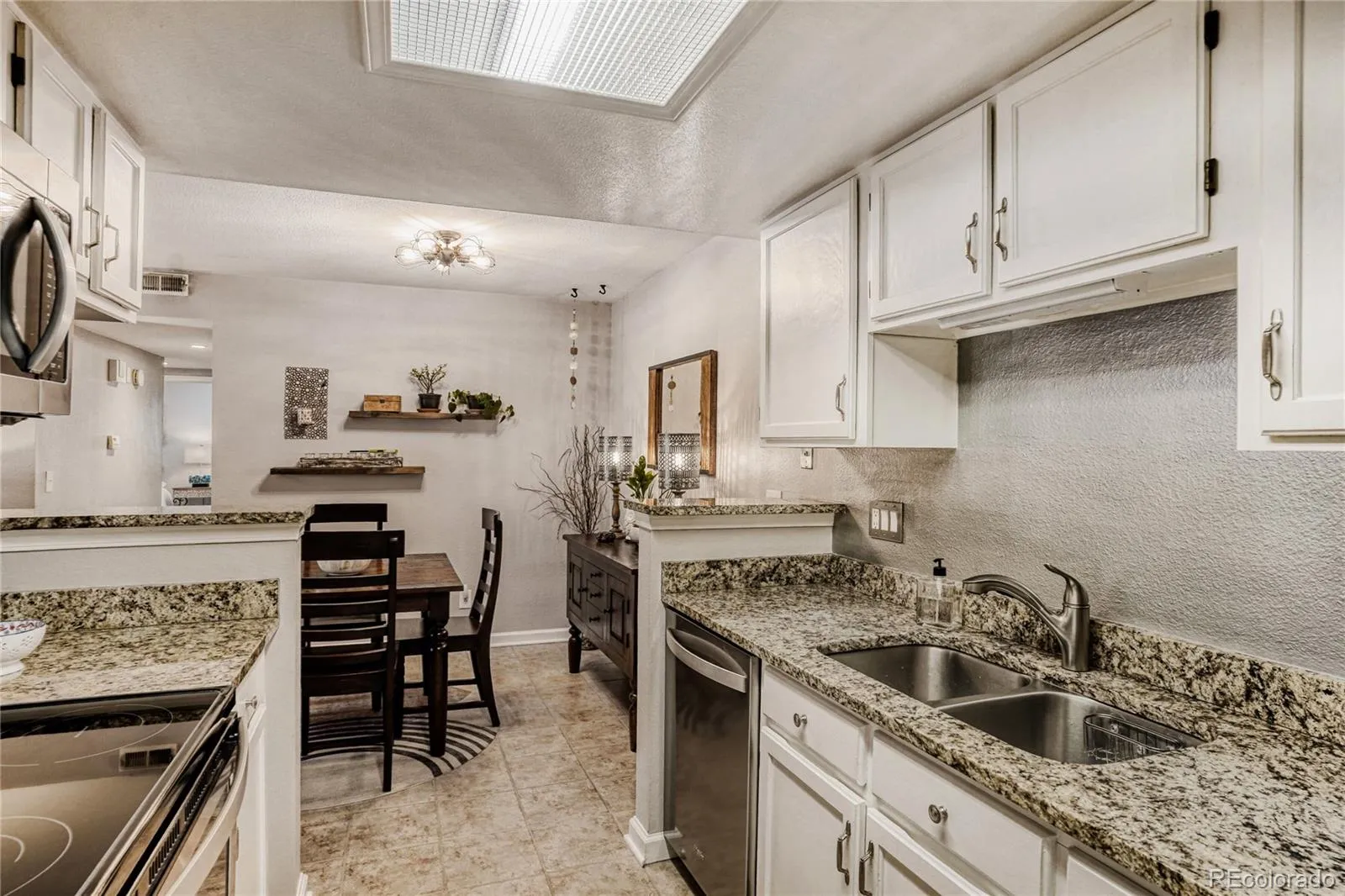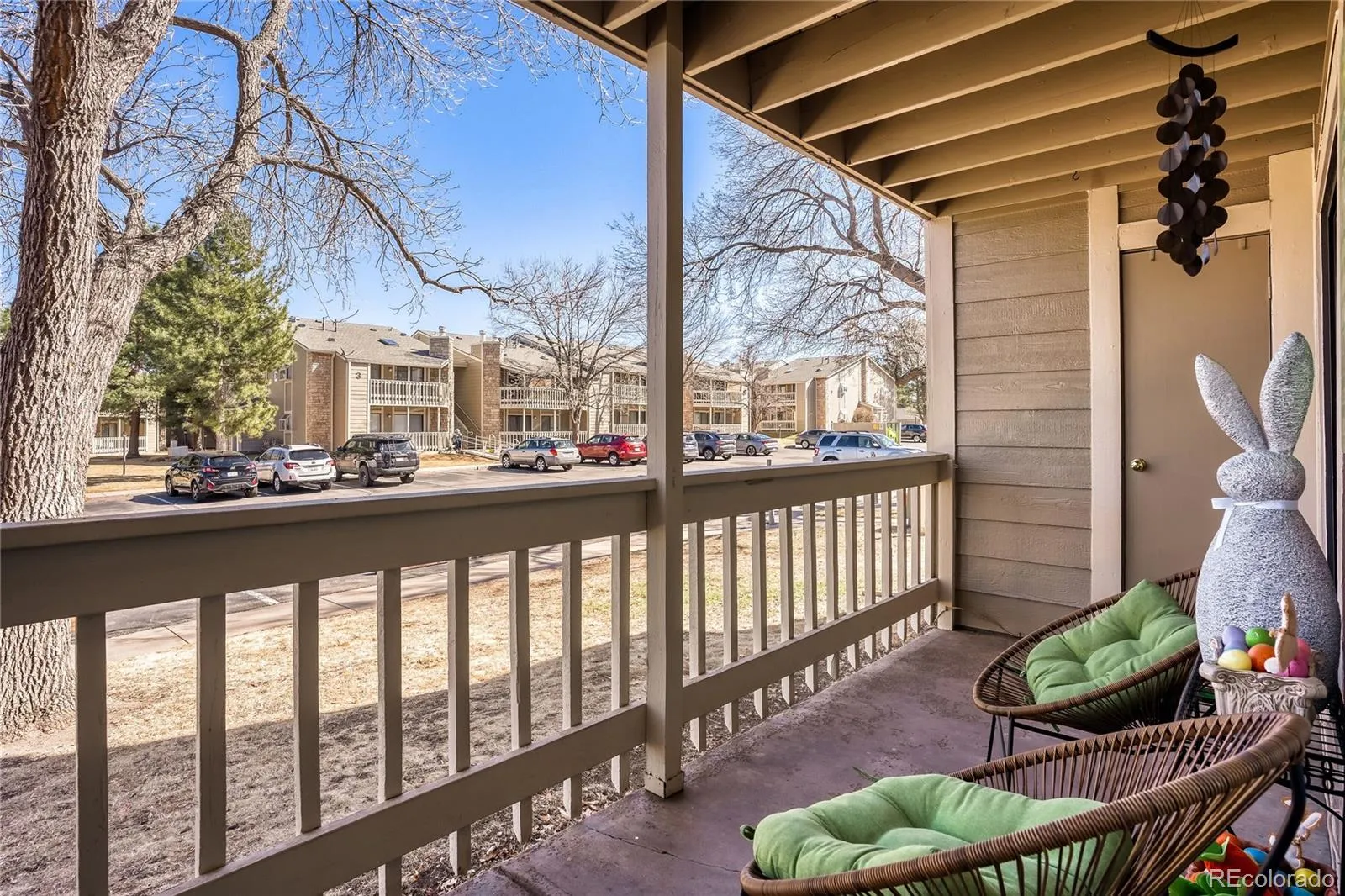 Exceptional two-bedroom, two-bathroom condo beautifully updated throughout in Woodside Village II. Rare find that includes a detached garage along with a reserved parking spot right out front, main level living with no stairs. Stunning wood shutter window coverings, cozy wood burning fireplace, wood laminate and tile flooring. Relax on your private patio that can be accessed by two sliding glass doors, one off the living area and one off the second bedroom/office. All appliances included, along with the washer and dryer. Enjoy nearby parks, trails, dog park, shopping and restaurants near Lowry, Cherry Creek and Anschutz Medical Campus. Pride in ownership.