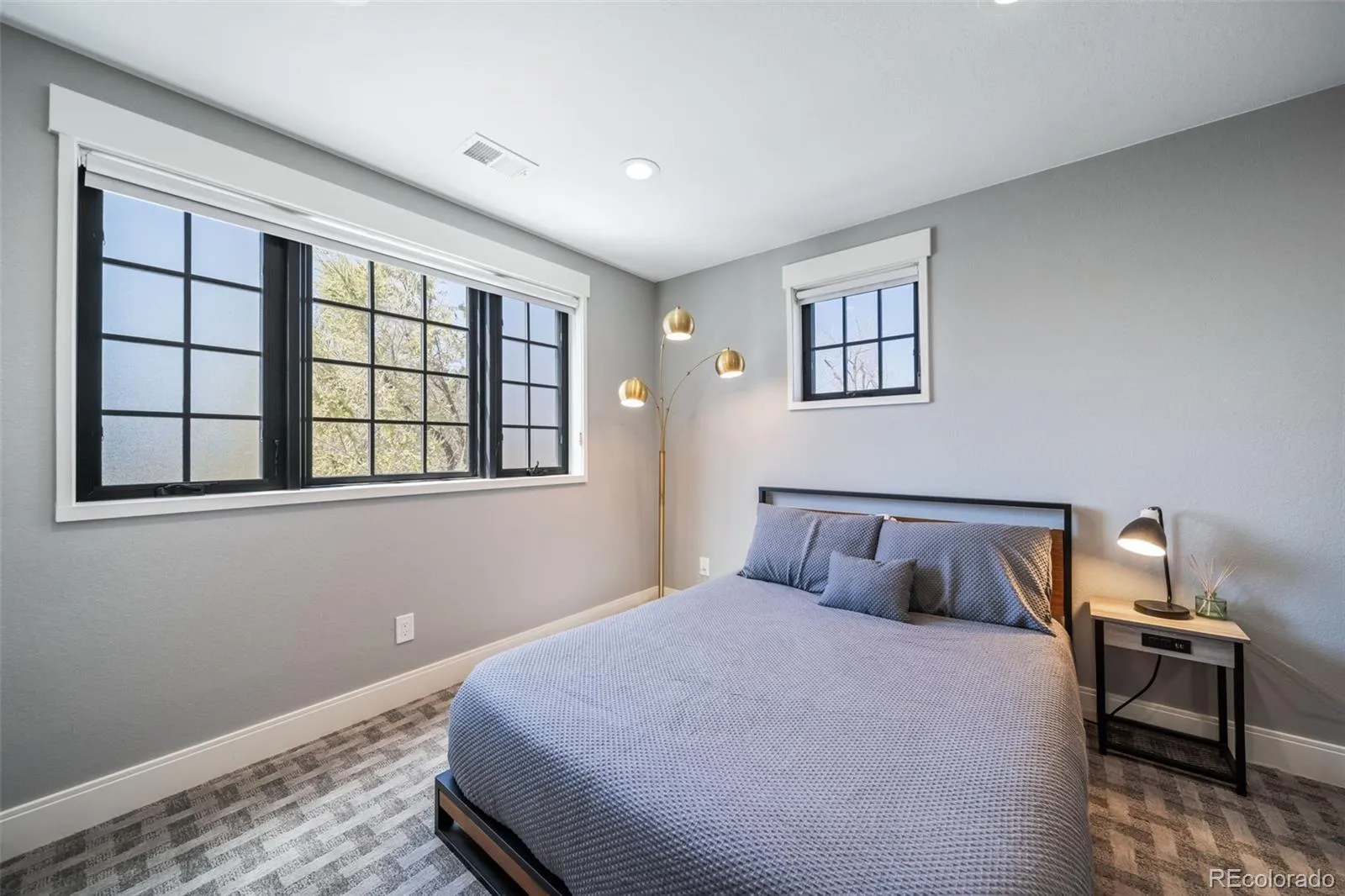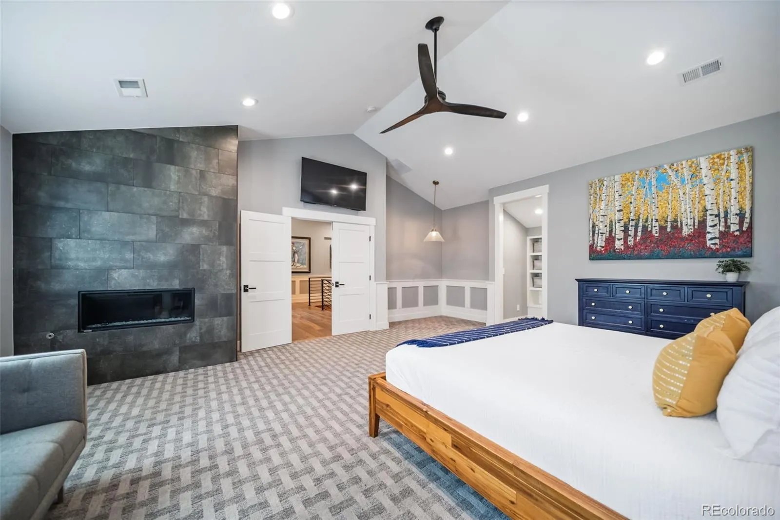 This masterfully curated home where modern design, craftsmanship, and indoor-outdoor living converge in Denver’s sought-after Slavens Elementary School District is a MUST SEE! The sunlight filled open floor plan, black-framed windows, paneled ceilings, and a bold open staircase create an unforgettable first impression. A full wall of glass opens to an expansive covered patio and private backyard, perfect for refined entertaining or everyday serenity. At the heart of the home, the designer kitchen is sure to impress with striking deep navy cabinetry, a contrasting white island with seating and storage, snazzy herringbone backsplash, double ovens, gas cooktop, french door refrigerator, two dishwashers, and additional beverage cooler. A butler’s pantry (with an additional enclosed pantry) leads to a formal dining room, surrounded by elegant wainscoting, and featuring a buffet space and wine refrigerator. The great room’s dramatic tiled gas fireplace with built in storage creates a perfect backdrop for gatherings large and small. The main floor also features a stylish private office framed by custom built-in bookcases and a serene guest suite with its own bath and patio access — ideal for guests seeking comfort and privacy. Upstairs, the primary suite is a luxurious retreat with a cozy fireplace, spa-like ensuite bath with a freestanding soaking tub, glass-enclosed shower, and dual vanities. The custom walk-in closet features a center island and storage worthy of a celebrity wardrobe, elevating everyday living to something extraordinary. Two additional bedrooms share a beautifully appointed Jack & Jill bath with double sinks, a freestanding tub, and a separate shower. The finished lower level offers a convenient wet bar with a full-size refrigerator and dishwasher, a spacious recreation room, a private guest suite, and a dedicated exercise room. Located near parks, trails, shopping, dining, and mere steps away from an incredible Saturday morning Farmer’s Market!