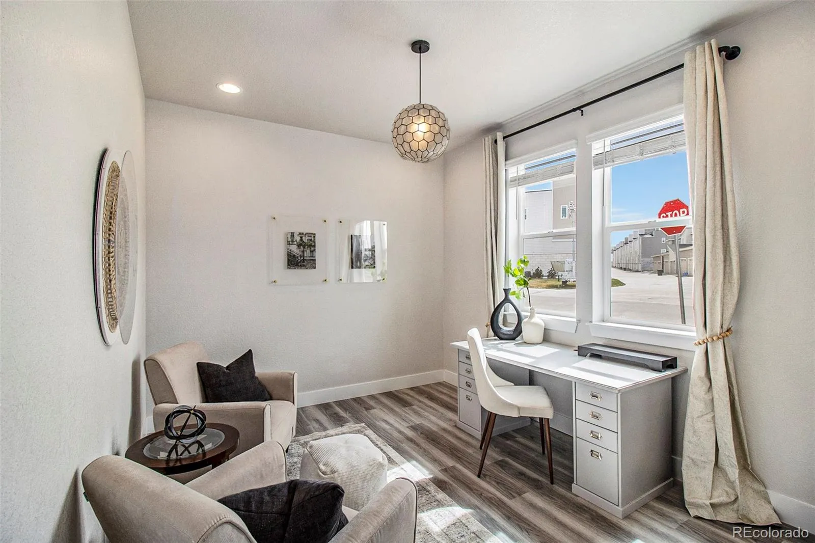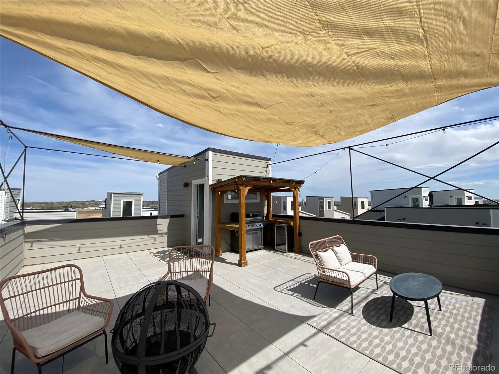 Welcome to this stunning 3beds, 3bath home located in the desirable city of Northglenn. Boasting close to 2000 square feet of living space, this residence offers contemporary design elements and modern amenities that are sure to impress. Step inside and be greeted by an inviting open floor plan that seamlessly connects the main living areas, creating a spacious and welcoming atmosphere. The heart of the home is the eat-in kitchen, featuring a stylish island that not only serves as a focal point but also provides ample space for meal prep, casual dining, and entertaining guests. The kitchen is equipped with brand new appliances, custom cabinetry, and a pantry for added storage. The large master suite features a walk-in closet and an ensuite bathroom for your convenience. One of the highlights of this home is the roof top deck, offering mountain views and creating a perfect setting for outdoor gatherings, enjoying beautiful sunsets, or simply unwinding after a long day. The garage floors have been professionally redone with solids epoxy base coat and Polyaspartic topcoat. Lifetime warranty, will transfer. Additionally, this home features a separate office on the entrance level, providing a quiet and productive workspace for those who work from home or need a designated area for daily tasks. Only 15min to Denver with easy access to parks, shopping, dining, and other amenities. With its modern design and functional layout, this home presents an ideal opportunity for those seeking a lifestyle of comfort, convenience, and style.