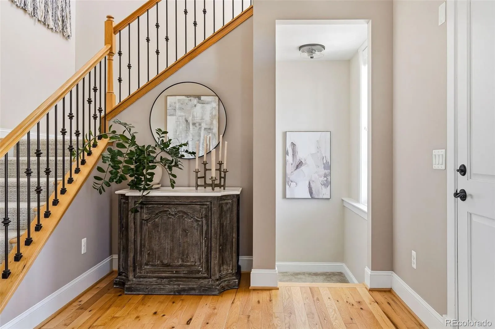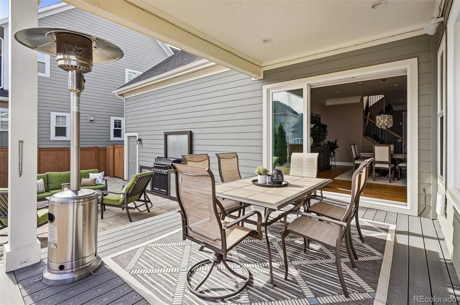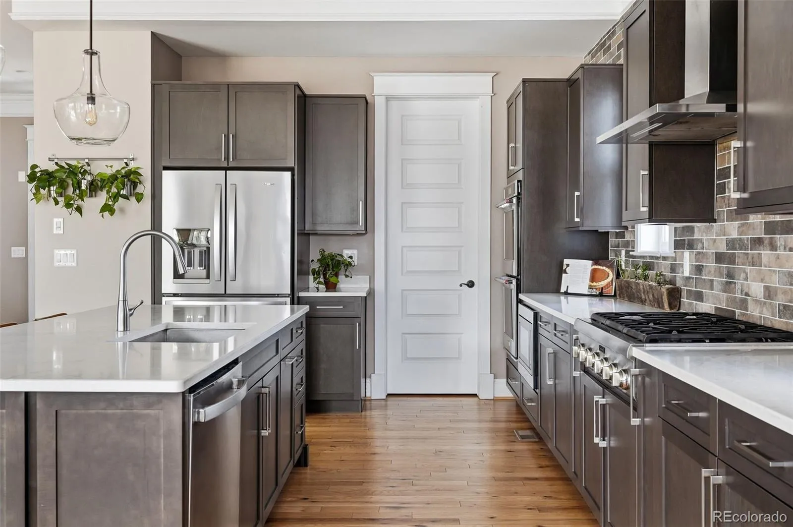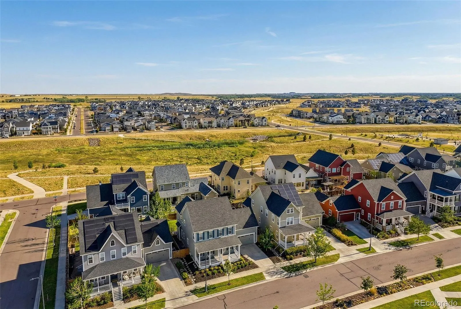 FOUR BEDS. A REAL OFFICE. A HUGE YARD. A PARK FRONT LOCATION. A HOME THAT HOLDS IT ALL. Start with a location that connects when needed and calms when you don’t. In a quiet cove of homes framing a park that leaves the crowds behind, this home puts the Prairie Basin’s big views and trail runs within easy reach and makes dips at Splash Landing a breeze when summer hits. The easy ‘never late’ commute to Anschutz, DIA, or even Northfield High make mornings feel civilized. And for those logging on instead of heading out, a DEDICATED PRIVATE OFFICE means the workday starts and ends on your terms. Right sized by design, you’ll find room in all the right places. A proper entry, with solid hardwoods that extend through the main to the primary suite, welcomes guests and sets the tone for evenings where glasses clink and laughter lingers long past dessert. A great room, generous in size, and bright with oversized picture windows keeps things cozy around a fireplace anchored by a refreshingly distinct brick accent wall. The kitchen is loved by a trained chef! It starts with an island that seats four without bumping elbows, a THERMADOR cooktop, double ovens, a Zephyr range hood, and a walk-in provision pantry that earns its square footage. Room for full crew dining but the GLASS WALL telescopes wide open and stretches that space so dinner can drift outside alfresco, under cover, music on, conversations carrying. And then, that BIG BACKYARD makes its move! There’s room on the grilling patio to keep the grill master company, space for a firepit patio that calls everyone in a little closer, and plenty of room left over for tag, a toss, or off-leash zoomies. Top that with the ELEVATED PRIMARY SUITE and an owner’s personal spa; a soaking tub, an XL shower with tile work that doesn’t skimp, and direct laundry room access because someone was thinking ahead! And to wrap up, a finished basement with 9′ ceilings that supports GUESTS and game nights with room to spare. CHECKS EVERY BOX!