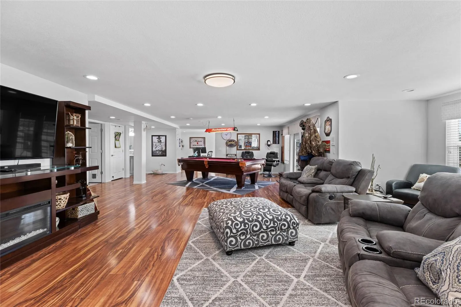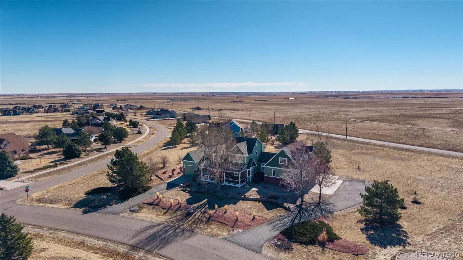 Updated 6-bedroom, 5-bath walkout two-story on a professionally landscaped 1.78-acre corner lot in Antelope Hills. 4,728 finished square feet with oversized attached garages for 4 cars and more (RARE). New luxury vinyl plank flooring flows throughout the home. The main level opens with a foyer to the living room anchored by a gas fireplace with stone surround and wood mantel, flanked by large windows with wide open views of the plains. The kitchen features tile granite countertops, white cabinetry, a center island, and an adjoining breakfast nook. A formal dining area, main level bedroom/den/office, dedicated laundry room with utility sink, bedroom/office, and bath complete the main level. The primary suite includes a 5-piece bath with soaking tub, glass-enclosed shower, and walk-in closet. Two bedrooms above the garage share a full bath with separate access. The finished walkout basement is built for living and entertaining, with a massive recreation room, bar area with seating, a separate office/bedroom, and a full bath. Walk out directly to the patio from the basement level. A Sunsetter retractable awning extends the outdoor living on the back deck. Sellers have invested in the systems that matter. The entire roof was replaced in 2023 with Class IV impact-resistant IKO Nordic shingles carrying a transferable limited lifetime warranty and a newer furnace. Gutters, downspouts, and four south-facing Low-E windows were replaced at the same time. New furnace installed in 2023. New 50-gallon gas water heater installed in 2025. New custom metal handrails throughout. The oversized 3-car garage plus separate attached 1-car garage gives you four covered parking spaces with room for storage and projects. City water. Septic system. HOA is just $57 per month covering trash and grounds maintenance. Located minutes from I-70, DIA, and Bennett schools, with King Soopers less than 5 miles away.