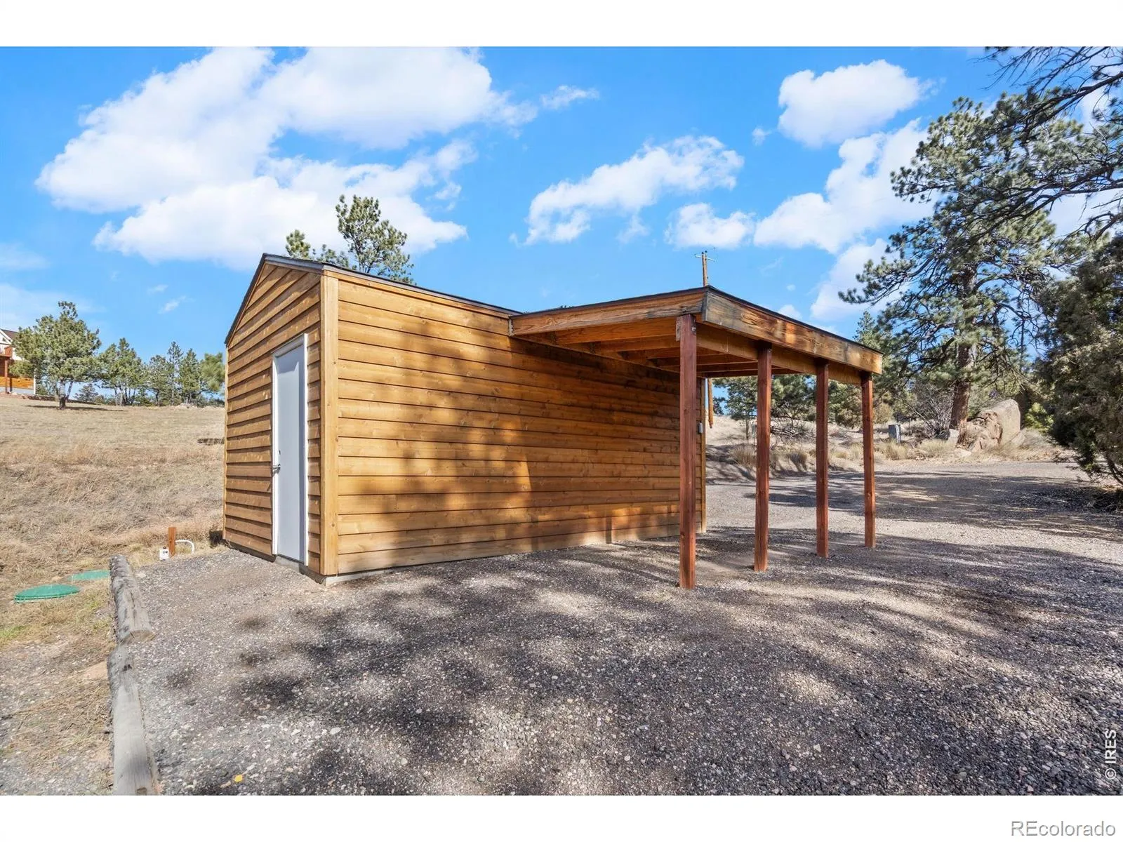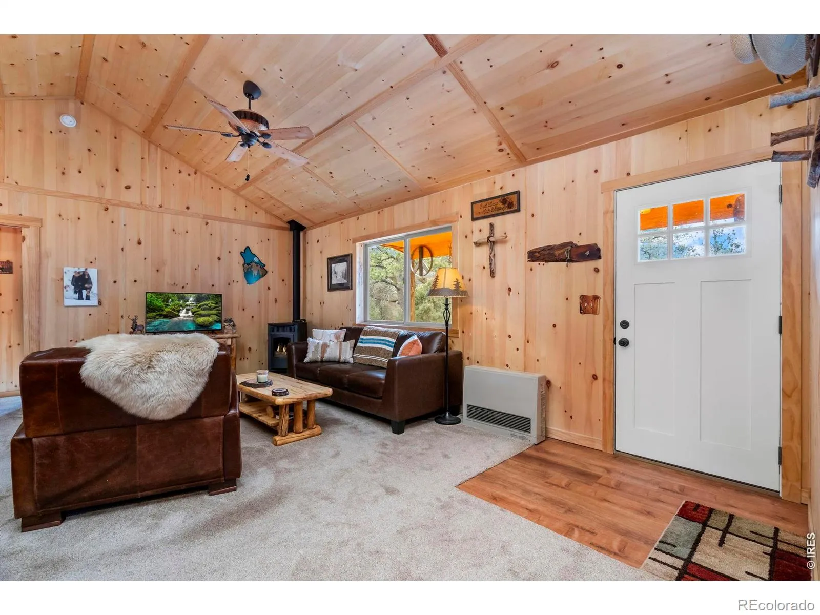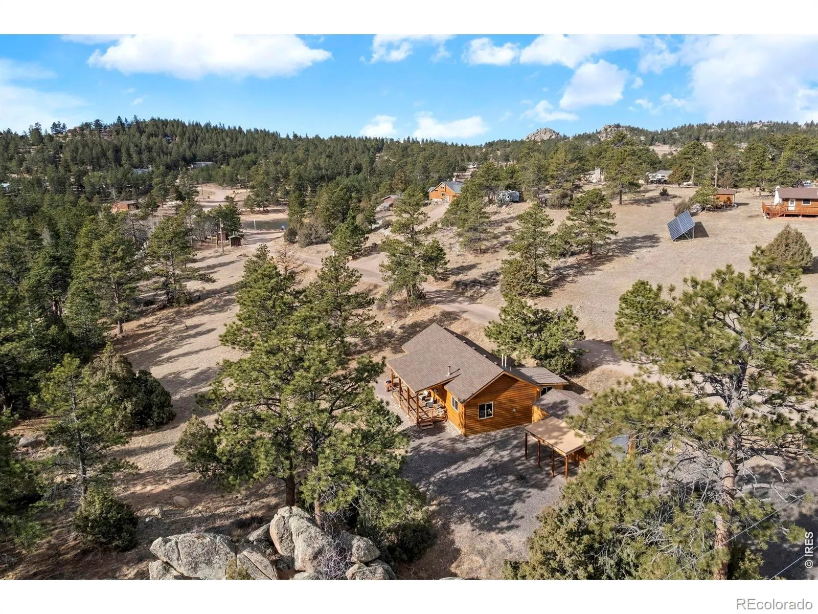 This mountain cabin retreat offers the kind of quiet that’s hard to find. Surrounded by wide-open skies and fresh alpine air, it captures the true spirit of Colorado mountain living. Nature wraps around you at every turn, with mature trees, rock outcroppings, and the occasional visit from local wildlife. Inside, the open-concept layout is filled with natural sunlight that pours through the windows. The 2-bed, 2-bath design creates a comfortable flow, making the home feel both spacious and cozy at the same time. A bonus room adds versatility and can easily serve as a home office, hobby room, or even a 3rd non-conforming bedroom. The pellet stove adds classic charm to the space, creating the perfect centerpiece for relaxing evenings. The kitchen is equipped with stainless steel appliances that pair beautifully with the open, rustic shelving, offering both modern touches and easy access to all your cooking essentials. Both bedrooms include their own ensuite bathrooms, creating a comfortable retreat at the end of the day. Step outside to the covered porch that invites you to slow down and take it all in. Soak in the sunrise or simply unwind to the soothing sounds of nature while sipping your morning coffee. The detached one-car garage with a convenient carport provides protected parking and additional storage for tools, gear, or outdoor equipment. This home is also wired with a whole-house generator and includes a conditioned crawl space to help prevent frozen pipes, important upgrades that add peace of mind in the mountains. Tucked into the scenic beauty of Glacier View Meadows, the community is surrounded by national forest lands and features three private lakes, offering abundant opportunities for hiking, hunting, fishing, and exploring the great outdoors. Located just about 35 minutes from Fort Collins, you get the perfect balance of mountain privacy with convenient access to town amenities. The tractor and some furniture are available for purchase!