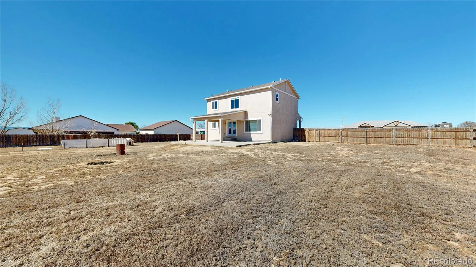 Set on a 1-acre corner lot in Pueblo West, this contemporary stucco home offers 6 bedrooms, 4 full baths, and 8–9 ft ceilings. The layout includes a convenient main-level bedroom adjacent to a full bath. Upstairs features a bonus loft area, 3 bedrooms, and 2 baths, including the primary suite with a 5-piece bath and walk-in closet. Featuring tile, engineered wood, and luxury vinyl plank flooring. The finished basement offers 2 conforming bedrooms, a full bath, and a rec room, this home offers an ideal floorplan for multi-generational living! To complement, there is a 3-car attached garage plus a detached 2-car garage that provides ample space for vehicles, hobbies, and large toys. The property also offers room for outdoor enjoyment under the 36ft x 20 ft covered patio or gardening, and even includes a chicken coop. Located in Pueblo West, a community known for wide lots, open horizons, and easy access to trails, everyday dining and services, and is only 10 minutes from Pueblo Reservoir.