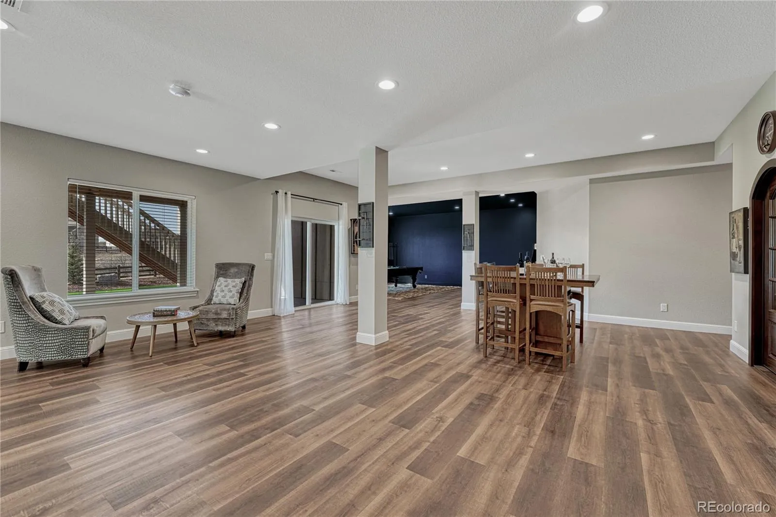 Welcome to Macanta—where refined living meets Colorado’s natural beauty. Tucked at the end of a quiet cul-de-sac in Castle Rock, this Toll Brothers ranch sits on almost 1/2 acre, with just one neighboring home, offering privacy and sweeping views of Pikes Peak. From the back deck, enjoy stunning sunsets and frequent wildlife sightings. Inside, thoughtful design and quality craftsmanship shine. The open great room features 12-foot ceilings, a dramatic floor-to-ceiling fireplace, and a four-panel sliding glass wall that creates seamless indoor-outdoor living and frames breathtaking mountain views. The kitchen is both beautiful and functional, anchored by a 12’ x 6’ quartz island perfect for gathering. Rich cherry smoke Yorktowne cabinetry pairs with premium JennAir appliances, including three ovens for effortless hosting. The main-level primary suite offers a private retreat with a spa-inspired bath, dual vanities, a soaking tub within an oversized walk-in shower, and a generous 10’ x 14’ closet with direct laundry access. Four bedrooms—including custom built-in bunks—provide flexible space for family and guests. The finished basement expands your living space with a cozy den, dedicated theater with surround sound, custom snack bar, and a mahogany-door wine cellar storing over 400 bottles. Solid core doors, Venetian bronze hardware, and curated lighting reflect attention to detail throughout. Outside, enjoy an expanded deck and patio surrounded by professionally landscaped native gardens. Modern comforts include a whole-house humidifier, instant hot water, dual thermostats, security system, and 360-degree exterior cameras. Macanta residents enjoy a clubhouse, pool, fitness center, event garden, and play areas set against stunning mountain views. This is more than a home—it’s a private retreat designed for comfort, connection, and the best of Colorado living. The homeowners have put in over 200K in custom upgrades since they purchased – come see this unicorn today.