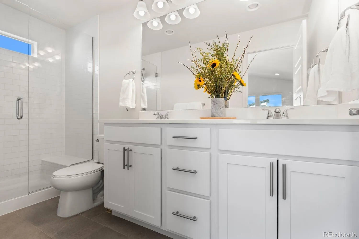 Welcome to this stunning END-UNIT townhome built by Thrive Home Builders in 2022 in the heart of Wheat Ridge! This townhome was designed with the highest LEED standards in mind, with nationally recognized award winning green, innovative, and energy-efficient home designs and solar powered for energy efficiency. The main floor has an open concept layout with high ceilings, hardwood flooring and abundant windows providing tons of natural light, while the adjacent kitchen offers a seamless flow featuring quartz countertops, generous cabinet space and stainless-steel appliances. A balcony off the main living room, as well as on the lower level offers the ideal outdoor area for entertaining. The primary bedroom offers privacy, along with a large en-suite bath and spacious walk-in closet. The second bedroom offers a quiet retreat for guests, along with a private en-suite bath. The laundry area is conveniently located on the third level. Attached two car garage with inviting entry area with storage/utility room. This residence reads like new construction, yet is move in ready, offering modern luxury, thoughtful design, and a prime urban location with close proximity to West Highlands, Sloan’s Lake, Edgewater and Olde Town Arvada. Easy highway access to I-70 and 15 minutes to downtown. This townhome reads like new construction, yet is move-in-ready for the next discerning owner!