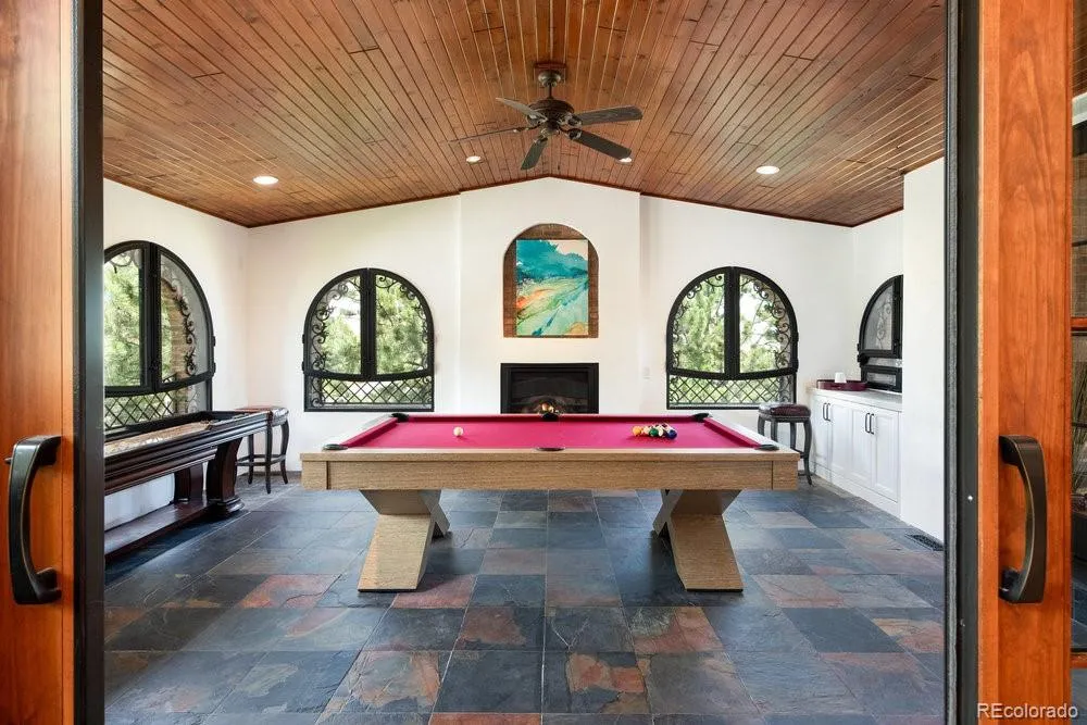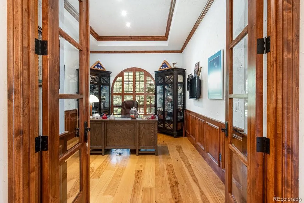 Start each day with breathtaking views in the prestigious Ravenna community. This stunning 4-bedroom, 6-bath residence features a rare 7-car garage with lift—perfect for the car enthusiast. Situated on a spacious corner lot, the home offers incredible views of the award-winning golf course and Chatfield Reservoir. The sun-filled family room showcases hardwood floors, a cozy fireplace, and an adjacent game room with pool table—ideal for entertaining. The newly renovated gourmet kitchen features Wolf appliances, quartzite countertops, and rich hardwood cabinetry. Retreat to the luxurious primary suite with a spa-inspired bath and walk-in closet. The finished basement is an entertainer’s dream with a wine cellar, exercise room, media room with tiered seating, and two additional en-suite bedrooms. Enjoy the sauna or relax in the private hot tub while taking in the views. Ravenna offers premier amenities including a fitness center, clubhouse, restaurant, pool, and access to nearby hiking and recreation at Chatfield Reservoir. Make this extraordinary property your dream home today.***CHECK OUT THE ONE OF A KIND VIRTUAL TOUR.***