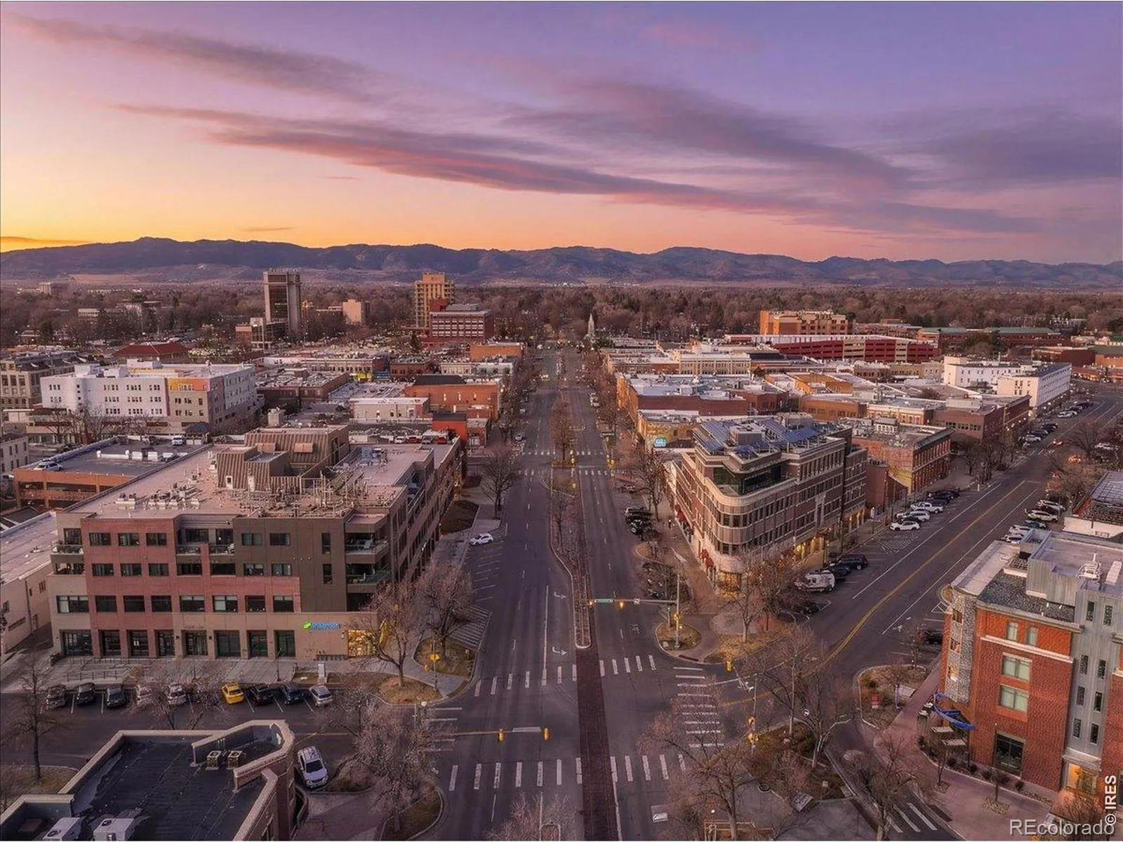 Boutique Old Town luxury – rarely available! Experience lock-and-leave luxury living in the heart of Old Town Fort Collins at Front Row on Mountain, a boutique community of just 22 residences. Step outside your door to restaurants, breweries, galleries, and vibrant nightlife, all within walking distance. This east-facing 1-bedroom, 2-bath condo is filled with natural light and stunning sunrise views. Enjoy your mornings on the covered private patio with gas line for grilling, or relax in the open-concept living area that flows seamlessly into the gourmet kitchen with Bosch appliances, quartz countertops, and designer finishes. The primary suite is a true retreat, featuring a spa-inspired bathroom and custom walk-in closet. Thoughtful design throughout includes in-unit laundry, tankless water heater, and dedicated bike storage in the garage. Residents enjoy exclusive amenities:Heated rooftop sky lounge with panoramic mountain, city, and plains views. Firepit seating and outdoor kitchen for entertaining. Secure underground parking, private storage, pet park, bike wash/workroom, and Amazon hub mailroom. Modern design, unbeatable location, and true low-maintenance luxury – this is Old Town at its finest. Homes in this boutique building rarely become available at this price. Don’t miss your chance to make it yours!