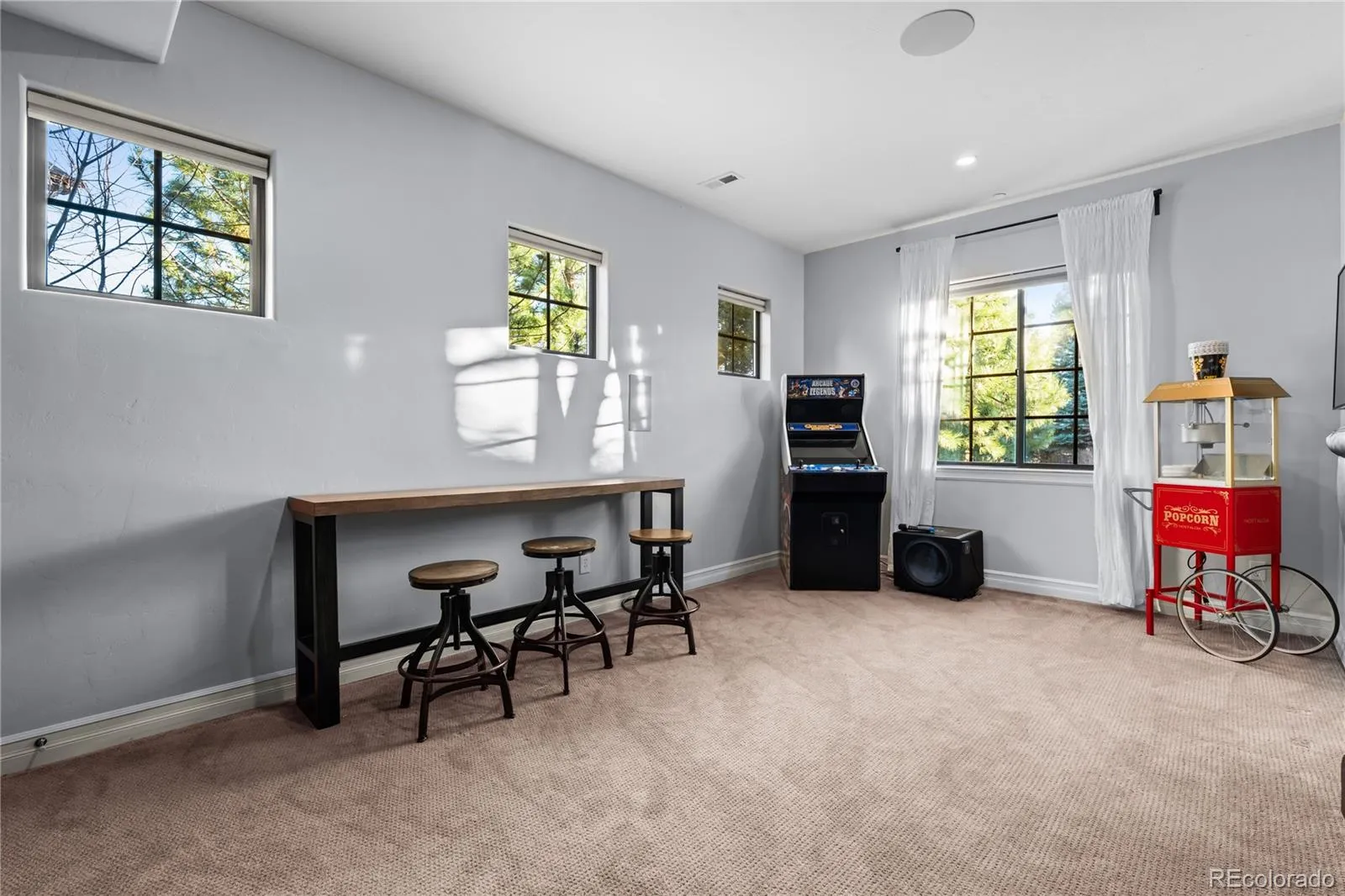 Out back, the setting is a standout. This backyard was built for Colorado living, with a covered patio, outdoor fireplace, built-in grill, fire pit, spa, and a water feature that brings a calm, resort-like feel. Whether it’s quiet mornings with coffee, evenings under the stars with friends, or weekends that never need plans beyond home, the outdoor living here is special. With two attached garages accommodating three cars, a lower level with a professional Atmos theater, and access to community amenities including golf, pool, and clubhouse, this is a rare Castle Pines offering that blends privacy, lifestyle, and presence in one exceptional address.