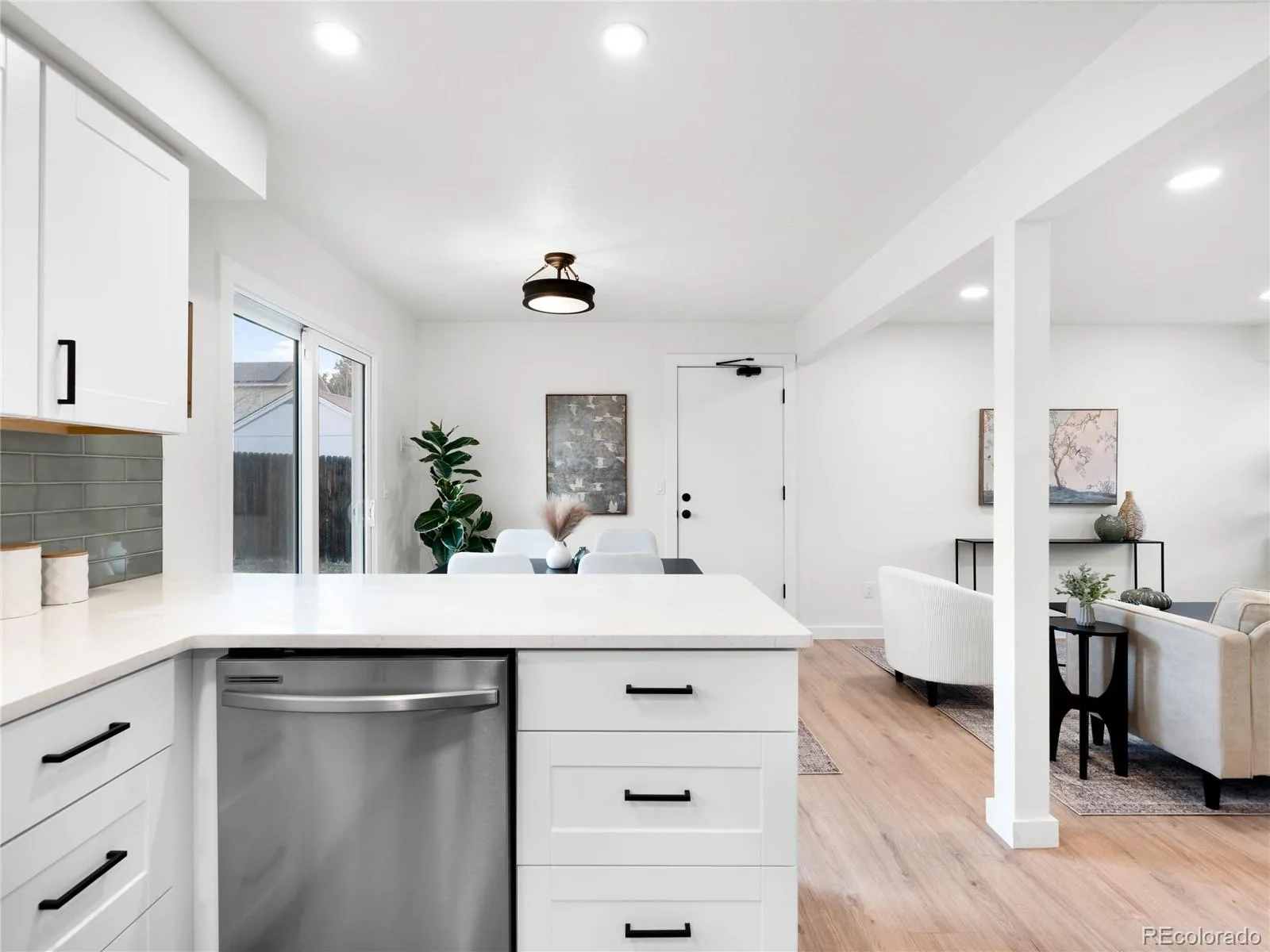 Inside, everything has been thoughtfully updated. Brand new white oak plank flooring, fresh interior and exterior paint, updated lighting, and a bright, functional layout that feels clean and modern. The completely remodeled kitchen features new cabinets, quartz counters, an elegant backsplash, and brand new appliances. Both bathrooms have been refreshed with updated finishes, and a new roof adds long term peace of mind! The backyard offers plenty of room to enjoy time with pets, relax or fire up the grill.