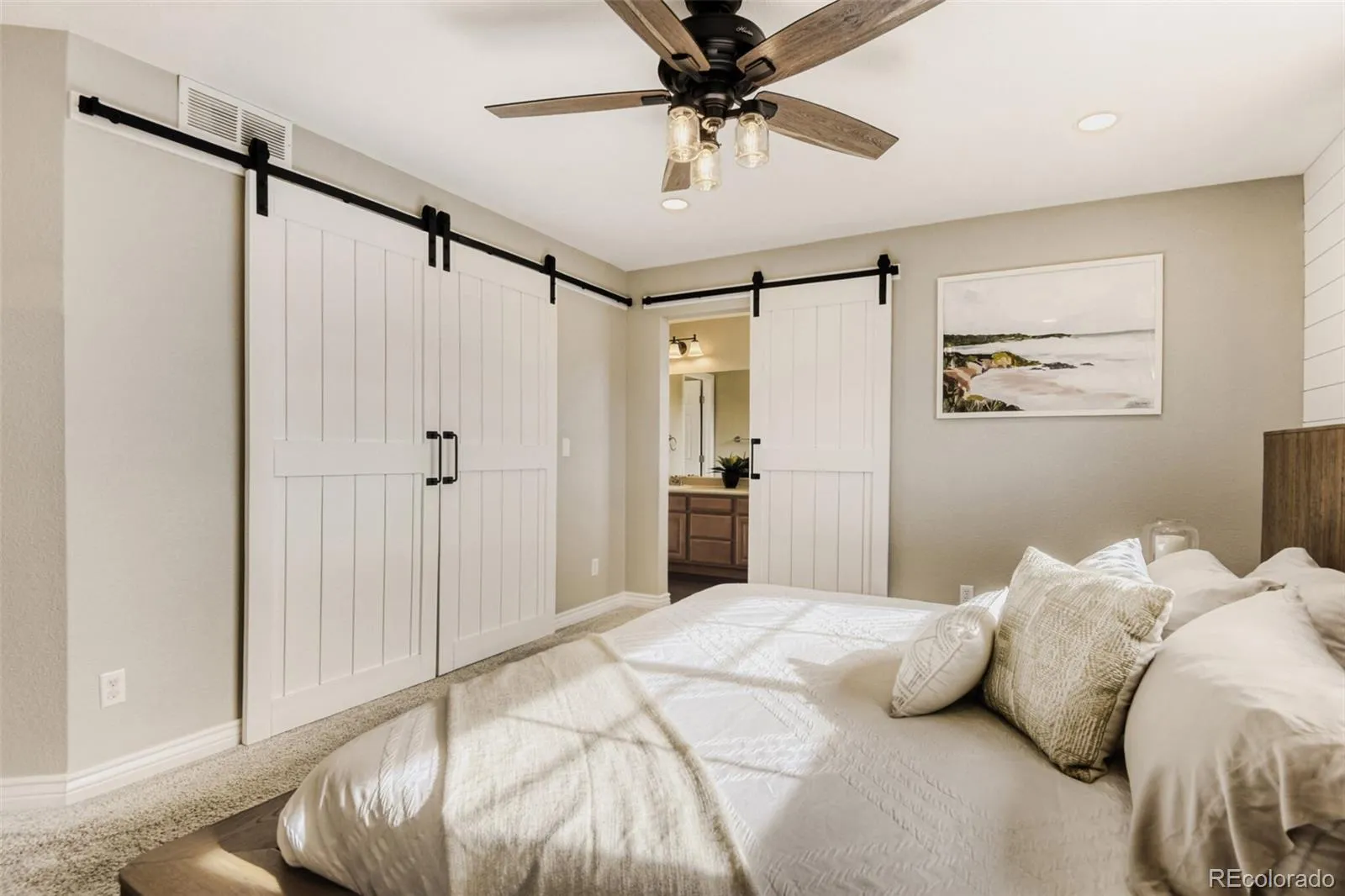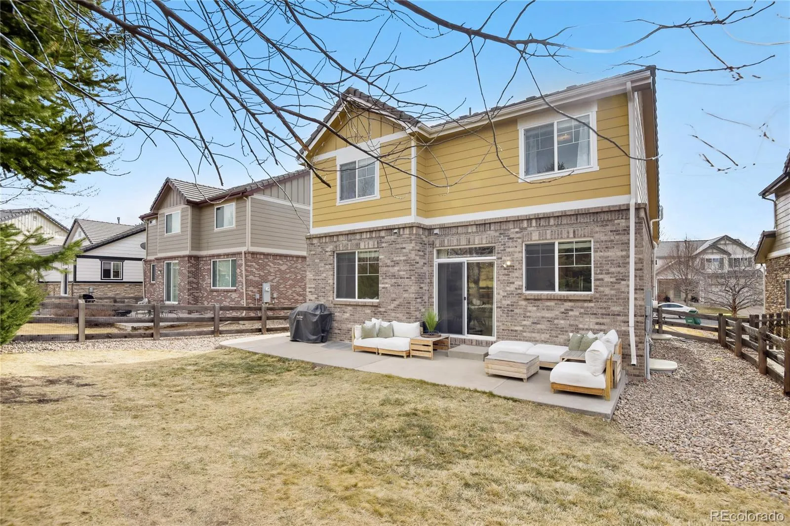 Farmhouse fabulous in the heart of Tallyn’s Reach. This home is giving full on model-home vibes from the moment you walk in the front door. With gleaming wide plank wood floors, soaring vaulted ceilings, crisp neutral walls, fresh white trim, black hardware, and modern lighting that gives the entire house that bright, airy designer feel. The stunning kitchen features updated cabinet hardware, a large farmhouse sink, sleek appliances, and flows seamlessly into the inviting family room with a cozy gas fireplace and a designer shiplap accent wall. Upstairs you’ll find two spacious bedrooms, including a dreamy primary retreat with a custom built-in closet system with stylish sliding statement doors, and a private en suite bath with double sinks, the large secondary bedroom has a custom closet and an accent wall, there is also a room that can be used for countless things such as a home office or play room, a full hall bath, and the ultimate convenience a laundry room right where you need it. The finished basement adds serious bonus space for entertaining, movie nights, or game days, along with a flex space room that is currently set up as a home gym. Outside you’ll love the fully fenced backyard with a cement patio perfectly staged for effortless outdoor living and summer entertaining. This is your chance to step into Tallyn’s Reach with style, confidence, and all the designer touches. The perfect location, close to schools, libraries, parks, community trails, highways, shopping, hospitals, Denver International Airport.
