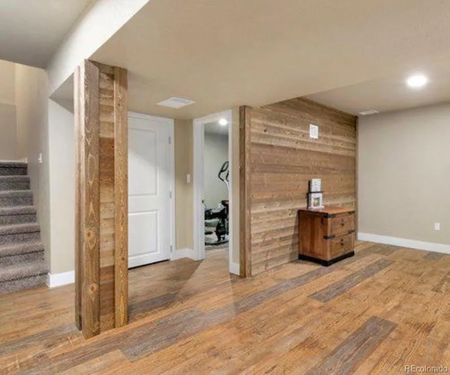 The finished and conditioned basement expands the living area with an additional room, a cozy living space, and a bathroom—perfect for guests, hobbies, or a private retreat.