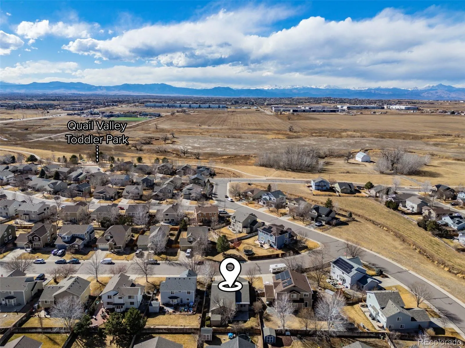 Welcome to this beautifully maintained ranch-style home in the highly sought-after Quail Valley subdivision. Lovingly cared for and meticulously clean, this home reflects pride of ownership throughout. Designed for comfortable main-level living, the home features a bright, open floor plan that flows seamlessly between the kitchen, dining area, and spacious family room—perfect for everyday living and entertaining. The front living room provides a flexible space also ideal a home office or formal dining room. The updated kitchen is a true centerpiece, featuring high-end custom cabinetry with slow-close doors, under-cabinet lighting, granite countertops, stainless steel appliances, a pantry, and a large seated island perfect for gathering with family and friends. Gorgeous hardwood floors run throughout most of the home, complemented by fresh interior paint and abundant natural light. The spacious primary suite offers a peaceful retreat with a large walk-in closet and beautifully updated bathroom featuring a frameless glass shower, double vanity, and modern fixtures. The laundry is conveniently located on the main level. The unfinished partial basement provides excellent storage and potential for future expansion. Step outside to enjoy the low-maintenance yard with lovely landscaping, stamped concrete patio and side walkways, plus a storage shed for tools and outdoor equipment. The two-car garage includes a built-in workbench and shelving for projects and organization. Additional highlights include a new roof and low-cost HOA. The location is hard to beat—minutes from shopping & dining at Orchard Town Center and Denver Premium Outlets. Commuting is easy with quick toll road access, reaching DIA in about 20 minutes and Denver or Boulder in under 30 minutes. Stargate Charter School is also just down the road. This move-in ready home combines comfort, quality, and an unbeatable location. Schedule your showing today before its gone – these ranch homes are highly desirable!