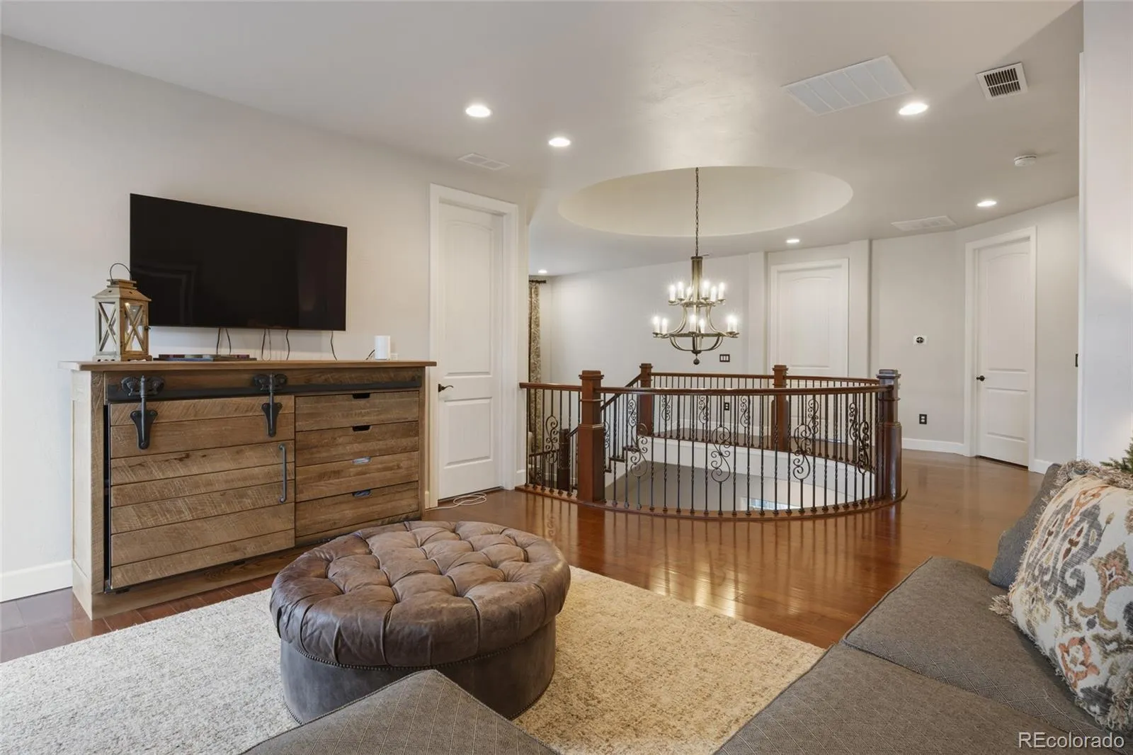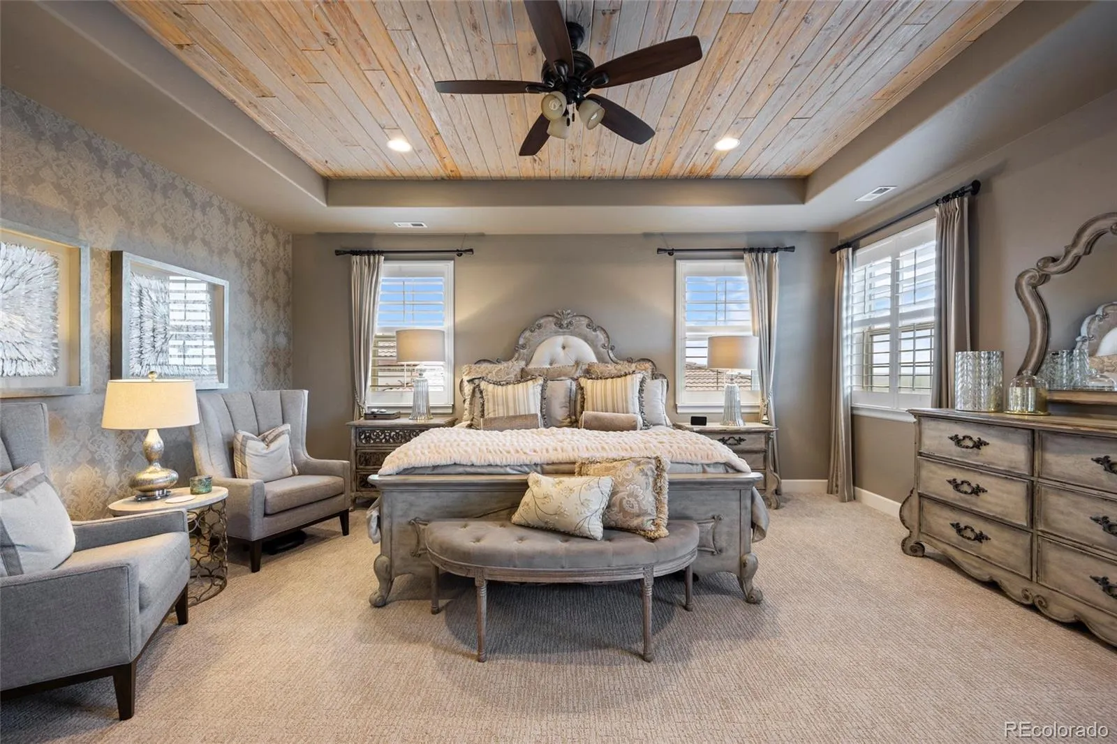 Welcome to Montecito at RidgeGate, one of Lone Tree’s premier communities, walk to Sky Ridge Hospital, the Charles Schwab campus, Lone Tree Bluffs, and the Lone Tree Rec Center. This Tuscan-inspired home combines distinctive architectural character with modern luxury and extensive upgrades throughout. Inside, the home showcases fresh new interior paint, custom draperies throughout, designer lighting in the kitchen and dining areas, and chef-style appliances including a new oven, fridge/freezer, and dishwasher. Additional thoughtful upgrades include custom Closet Factory systems in three bedrooms, a Restoration Hardware vanity in the powder room, custom built-in office bookshelves, and a wood ceiling in the primary suite. Designed for both comfort and function, the home offers five bedrooms plus a loft with optional sixth-bedroom potential, a main-floor study, wood coffered ceilings, exposed beams, and dramatic floor-to-ceiling windows. The finished basement is a standout feature, offering an entertainment area with in-wall home theater audio, wet bar with pebble ice maker, sitting area, large bedroom, and a custom Carrara marble bathroom. The walkout design opens to two covered rear patios enhanced with patio privacy shades, creating a more comfortable and secluded outdoor living experience. Outside, the property features fresh new exterior paint, designer exterior and landscape lighting, a fully fenced yard, and an entirely new front yard landscape. Even the behind-the-scenes details were done right, including a professionally excavated and re-poured basement slab and garage floor. Residents enjoy exceptional community amenities including a zero-entry pool, clubhouse, and high-speed fiber internet included in the HOA. With easy access to Bluffs hiking trails, I-25, and one of the highest settings in the City of Lone Tree, this is a rare opportunity to own a luxury home in one of the area’s most sought-after neighborhoods. More than a home, it’s a lifestyle.