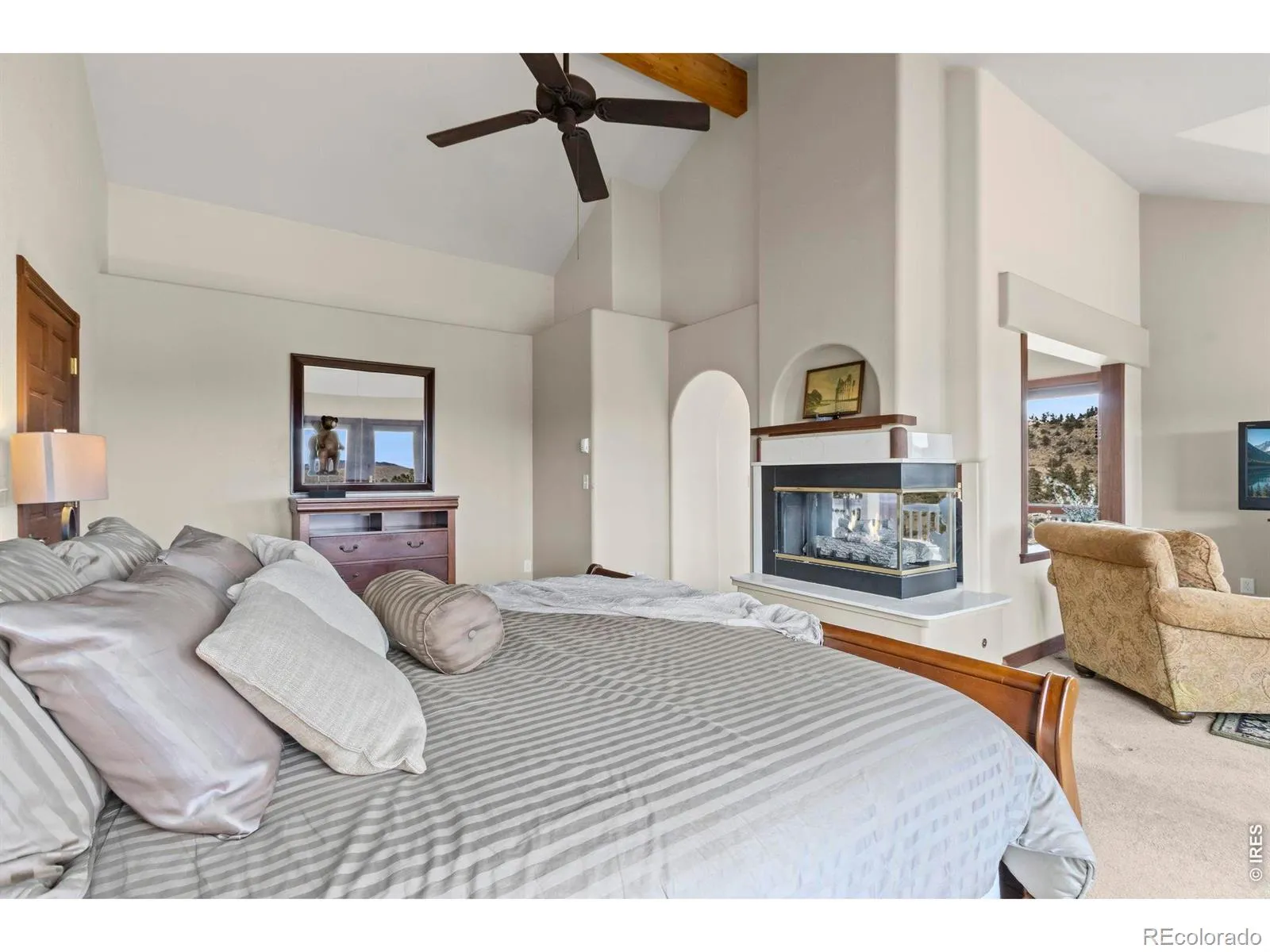 Prepare to have your breath whisked away by the mountain breeze at this exclusive Colorado retreat, where architectural elegance meets the majestic beauty of the mountainous landscape. Designed to pull the outdoors in, this home features floor-to-ceiling glass and expansive wraparound decks that frame stunning panoramic views from nearly every room. The heart of the home is a masterclass in comfort, anchored by a primary sanctuary that defines pure luxury with its multisided fireplace, private sitting area, and jetted soaking tub positioned to overlook the serene pond and rolling peaks. This residence is uniquely designed for both grand entertaining and quiet reflection, boasting a gourmet-inspired flow and a massive walkout basement with a huge recreation zone. Guests will enjoy their own lower-level retreat, complete with a private bedroom and a secluded outdoor sitting area. Experience a “top of the world” feel with unrivaled accessibility, located just a scenic 30-40 minute drive from the heart of Fort Collins and less than two hours from local ski resorts. This is where luxury, privacy, and the Colorado lifestyle finally meet.