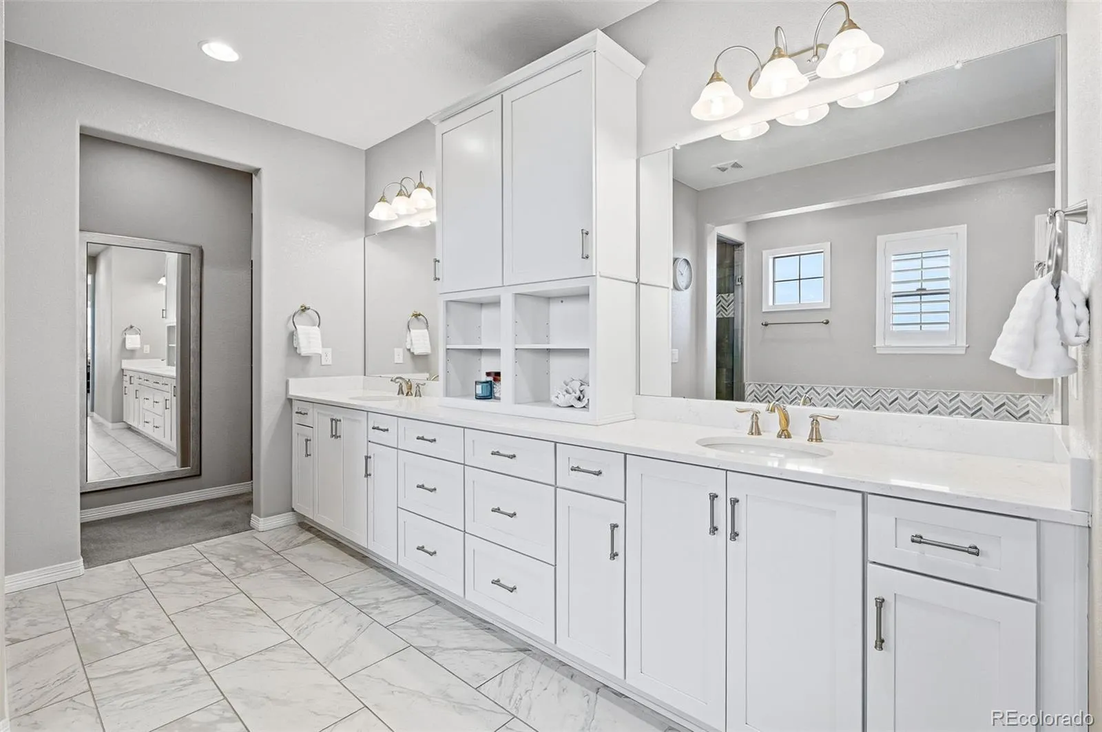 Abundant natural light floods the open living spaces through strategically placed windows with plantation shutters, ensuring your privacy while showcasing the beauty of the outdoors.
