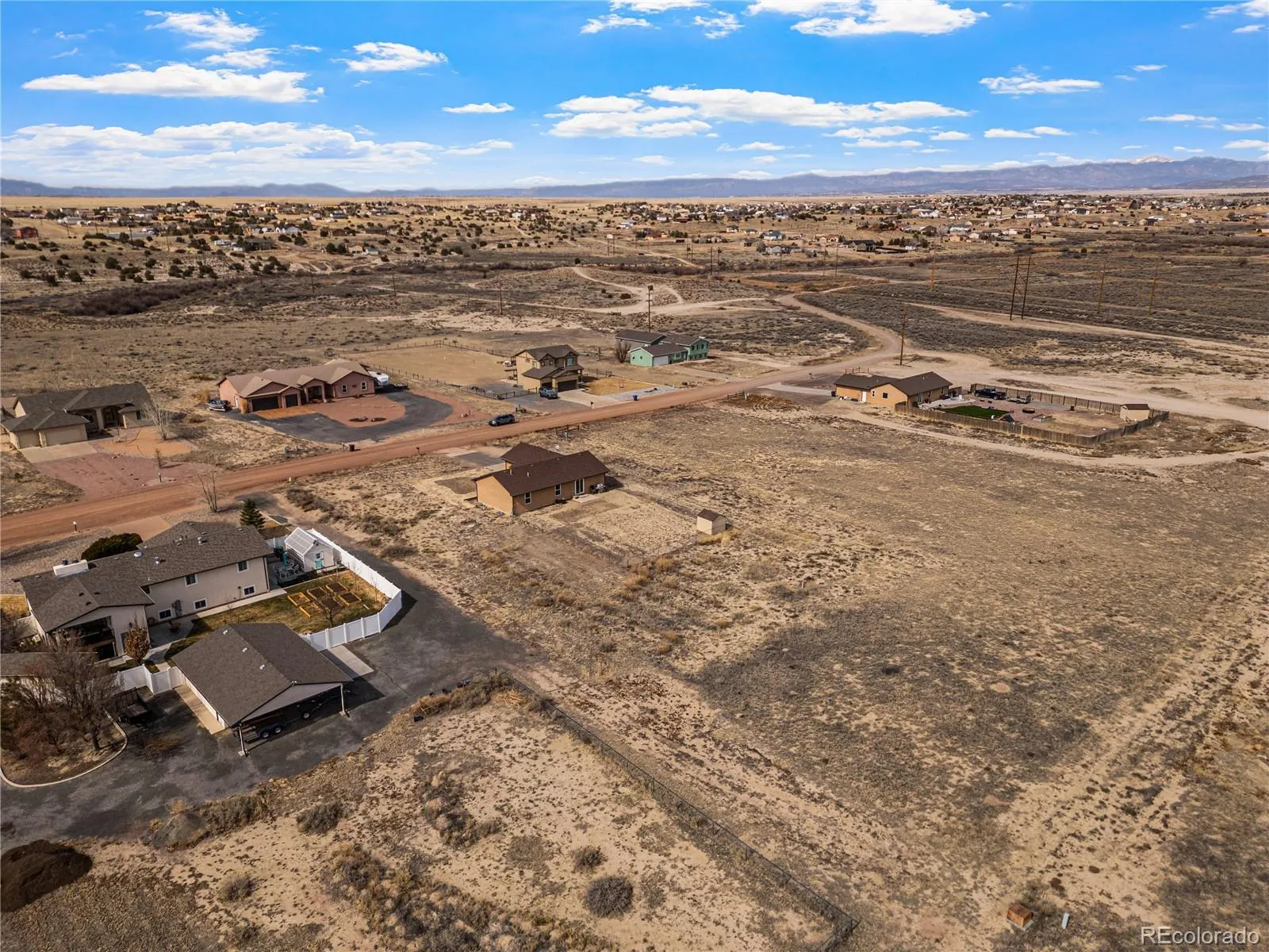 Set on a 1.15 acre parcel in Pueblo West, this 3 bedroom, 2 bathroom ranch style home offers a comfortable layout, open living spaces, and room to grow. The main level features vaulted ceilings and hardwood flooring through the living area, kitchen, and dining space, creating a bright and connected floor plan for everyday living and gatherings. The kitchen includes granite counters, a center island with bar seating, stainless appliances, and a pantry for additional storage. The adjoining dining area provides space for a full table and walks out to the backyard, making it easy to extend meals and entertaining outdoors. All three bedrooms are located on the main level. The primary suite includes a walk in closet and a private 3/4 bathroom with a walk in shower. Two additional bedrooms and a full bath offer flexibility for guests, office space, or hobbies. A dedicated laundry room adds convenience. Downstairs, the full basement expands the possibilities with a large finished family room and additional unfinished space ready for storage, a home gym, workshop, or future rooms. The attached two car garage offers everyday practicality, while the spacious backyard includes sections of metal fencing and plenty of room to design landscaping, garden areas, or outdoor living spaces across the 1.15 acre property. The size of the lot provides distance from neighboring homes and space for recreation, projects, or future improvements. Enjoy open skies and distant mountain views.