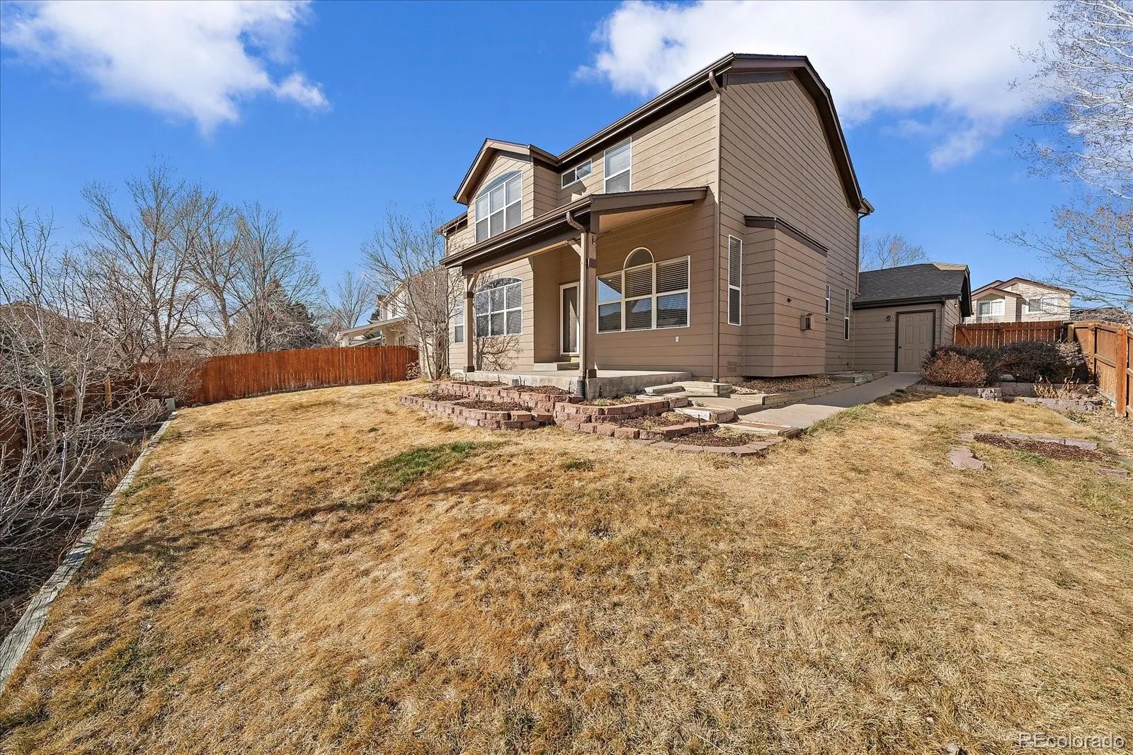 Updated two-story with a 3-car garage in The Highlands at Piney Creek featuring 4 bedrooms, 3 bathrooms and room to expand! The main foyer welcomes you with the warmth of hickory hardwood flooring, a living room featuring a bay window and a formal dining room with an updated light fixture. The beautifully remodeled kitchen features newer appliances, granite countertops, a gas range, undermount sink with a smart faucet, and an eating nook. Also on the main level is a spacious family room with a gas fireplace, built-ins, ceiling fan and an exterior door to the covered back deck. A main level office with French doors, a secondary hallway door and closet offers flexibility and could easily be converted into a bedroom. The main level also includes a full bathroom and a laundry room with a utility sink, upper and lower cabinets and the washer and dryer are included. Upstairs are three bedrooms along with a large loft with a ceiling fan that could be converted into an additional bedroom. Two of the secondary bedrooms feature ceiling fans and reach-in closets, and there is a full bathroom on the upper level. The primary suite offers vaulted ceilings, a sitting area and a remodeled five-piece bathroom with double sinks, quartz countertops, a walk-in shower with bench seating, and a relaxing soaking tub. The unfinished basement is plumbed for a future bathroom and offers room for expansion. Additional features include a whole-house attic fan, a roof replacement in 2023 with Class 4 shingles, a large grassy backyard and an 8×8 storage shed. The three-car garage has an epoxy floor coating as well as cabinet storage and an exterior service door to the backyard. The Highlands at Piney Creek feed into the Cherry Creek School District and residents can enjoy access to a community pool, playground, parks and trails. Convenient access to amenities, restaurants and Parker Road. Check out the floor plans with the photos as well as the 3D tour!