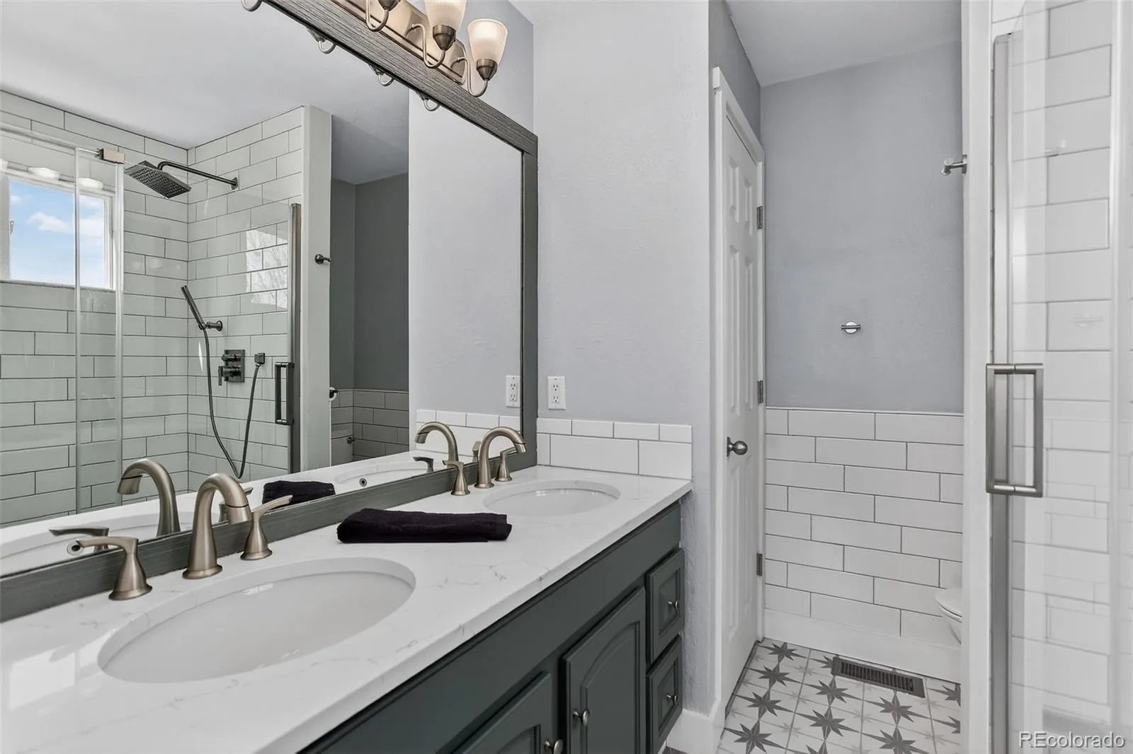 Upstairs, you’ll find four bedrooms plus a convenient second floor laundry with upgraded tile flooring and counter space for folding clothes. (Little things like this matter, right?) The primary suite features a beautifully upgraded bath with enlarged glass shower and designer finishes.