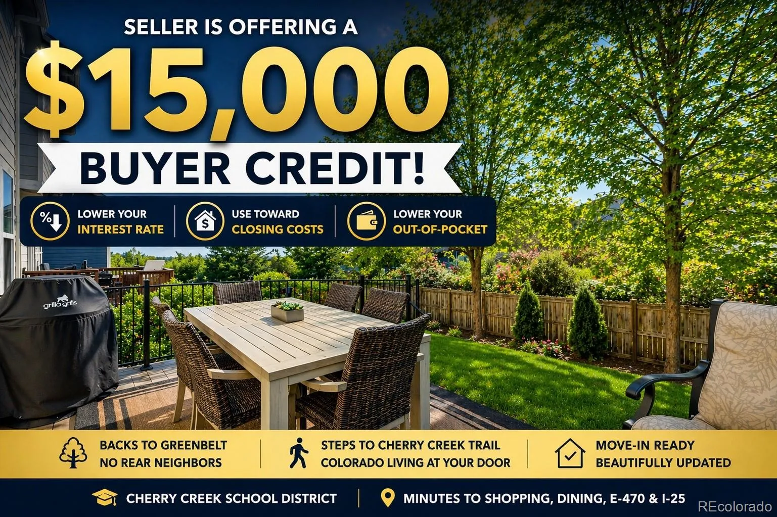 The seller is offering a $15,000 credit that can help cover closing costs, buy down your interest rate, or reduce your out of pocket expenses. It is the kind of head start that makes a real difference.