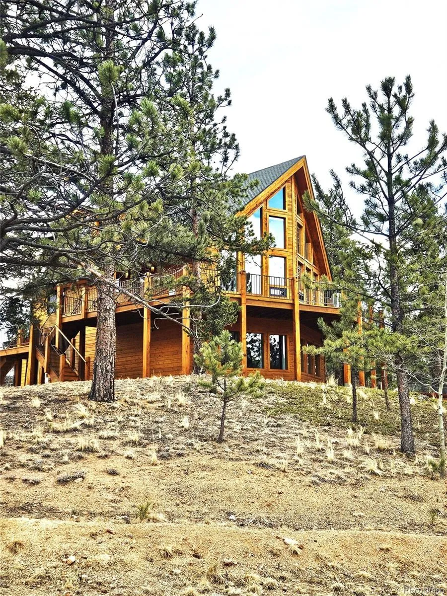 Welcome to this stunning custom mountain chalet, nestled in a breathtaking valley with spectacular 180* views of the Rocky Mountains. The striking exterior showcases elegant cedar siding. A 180-degree wraparound redwood deck features low-profile, no-maintenance railings. It’s perfect for enjoying crisp mountain air or hosting friends under a starlit sky. Step inside on the second floor to discover meticulous upgrades throughout. The bright, open-plan living area has soaring ceilings. A wall of windows floods the space with natural light. The windows offer seamless views above the tree line to the southwest, highlighting the surrounding wilderness. The inviting living room features hickory floors and a gas fireplace, creating an ideal spot to relax, watch sunsets, and enjoy the changing seasons. A beautiful gourmet kitchen flows effortlessly into the dining area. The dining space opens directly onto the redwood deck, making it perfect for entertaining. On the main floor, you’ll find two oversized secondary bedrooms, one with a four-piece ensuite bath for added comfort and privacy. Upstairs, the primary suite is a serene retreat with a loft sitting area and mountain views. The spa-like bath features a soaking tub, walk-in shower, dual vanities, and a heated towel rack for relaxation. The fully finished, above-grade walk-out lower level provides a spacious, flexible area. It is ideal for a home office, recreation room, den, or craft space. A three-quarter bath and two walk-in closets complete this versatile level. The oversized two-car garage offers ample storage for vehicles and gear. Ideal for ATV/UTV riding, horseback riding, hunting, and hiking. Access Mount Evans/Blue Sky Wilderness Trails and Meridian Trailhead. Just 60 minutes from Denver and Red Rocks. Both Breckenridge Ski Area and Denver International Airport are 90 minutes away. Don’t miss the chance to experience this serene mountain retreat.