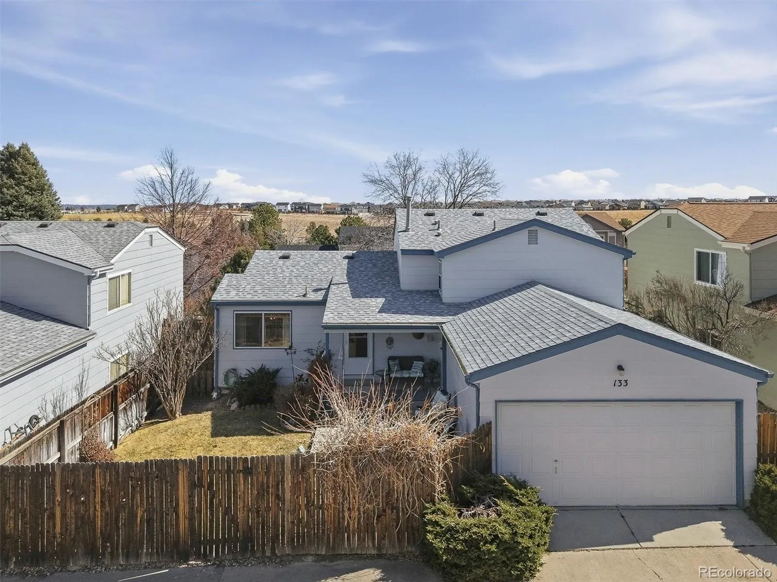 This 3 bedroom, 3 bathroom, and 2 car garage home is located in Founders Village at 133 Rockaway Avenue in Castle Rock. This is a beautifully updated home with mature trees, privacy and covered patio. This well maintained home has new carpet and laminate flooring. The main floor features a spacious living room, dining room, and kitchen. Step out to the private backyard retreat and enjoy the oversized back patio and sitting area with roller shade, and mature landscaping. Upstairs there is a primary bedroom, en-suite bathroom with large garden tub, 2nd bedroom, and another bathroom. The lower level has a family room with gas fireplace, 3rd bedroom, 3rd bathroom, laundry room, mechanical room, and access to the storage in the crawlspace. The 2-car garage is accessed via a quiet alleyway, which is both convenience and privacy. Ideally located near Founders Park, scenic Mitchell Creek Trail, just minutes from downtown Castle Rock, Hwy 86, Parker Road, and I-25, this home blends comfort, location, and lifestyle. Make this your next home!