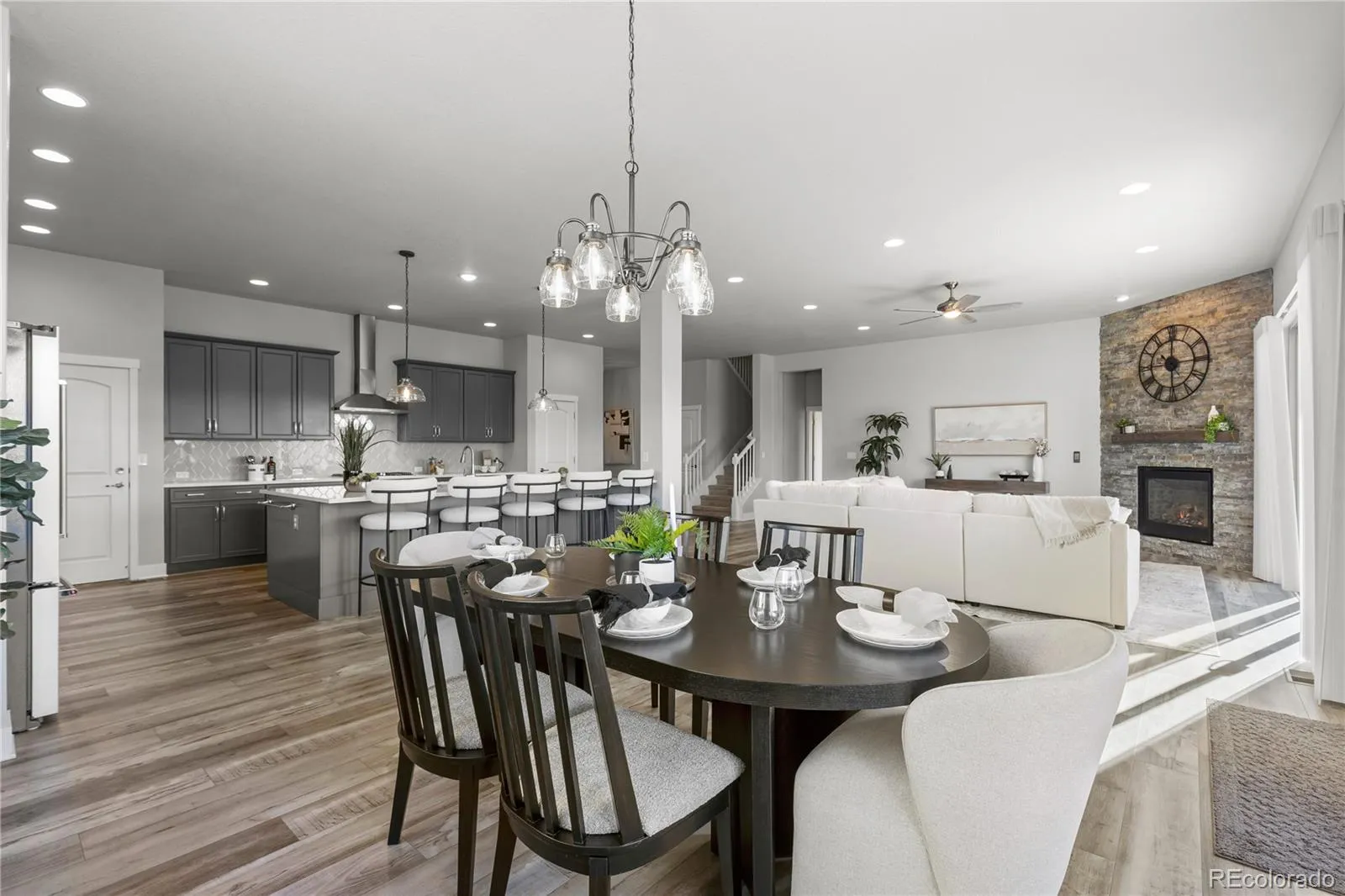 Never want for space or home comforts again. This beautifully designed home in Arvada offers nearly 5,900 square feet of thoughtfully crafted space and a genius layout. Tall ceilings and plank flooring set the tone right away, and a main-floor office with French doors creates a work-from-home retreat, while the enormous mud room with walk-in storage keeps shoes, coats and everyday clutter tucked away. A spacious laundry room includes a sink and closet for extra functionality.