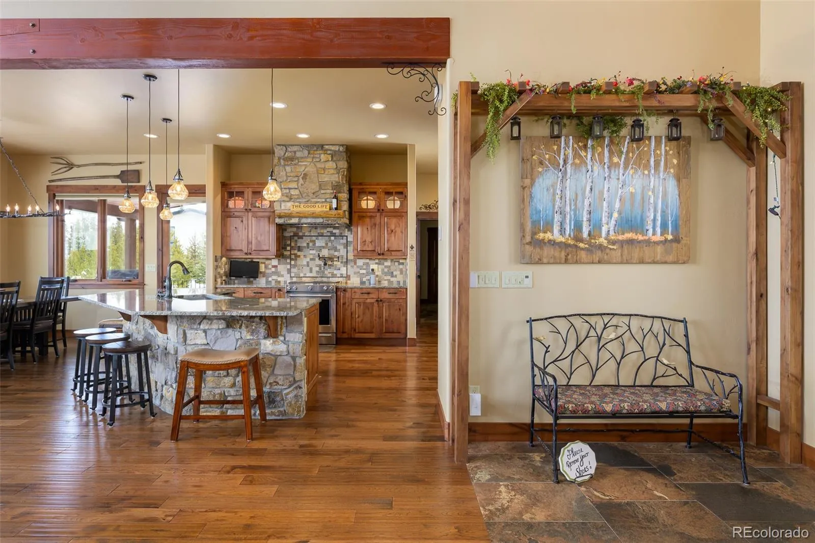 A heated three-car garage provides ample storage for bikes, skis, and gear, along with a built-in dog wash for your four-legged trail companions. A spacious mudroom with custom cubbies keeps everything organized and ready for the next outing.