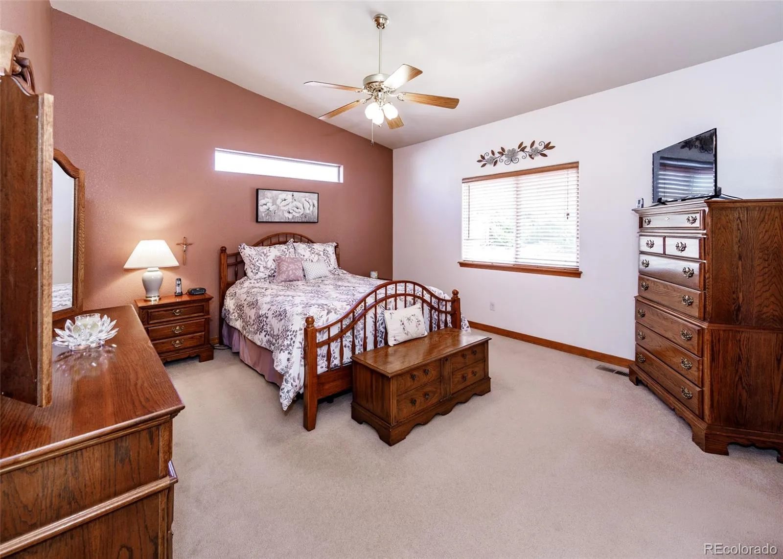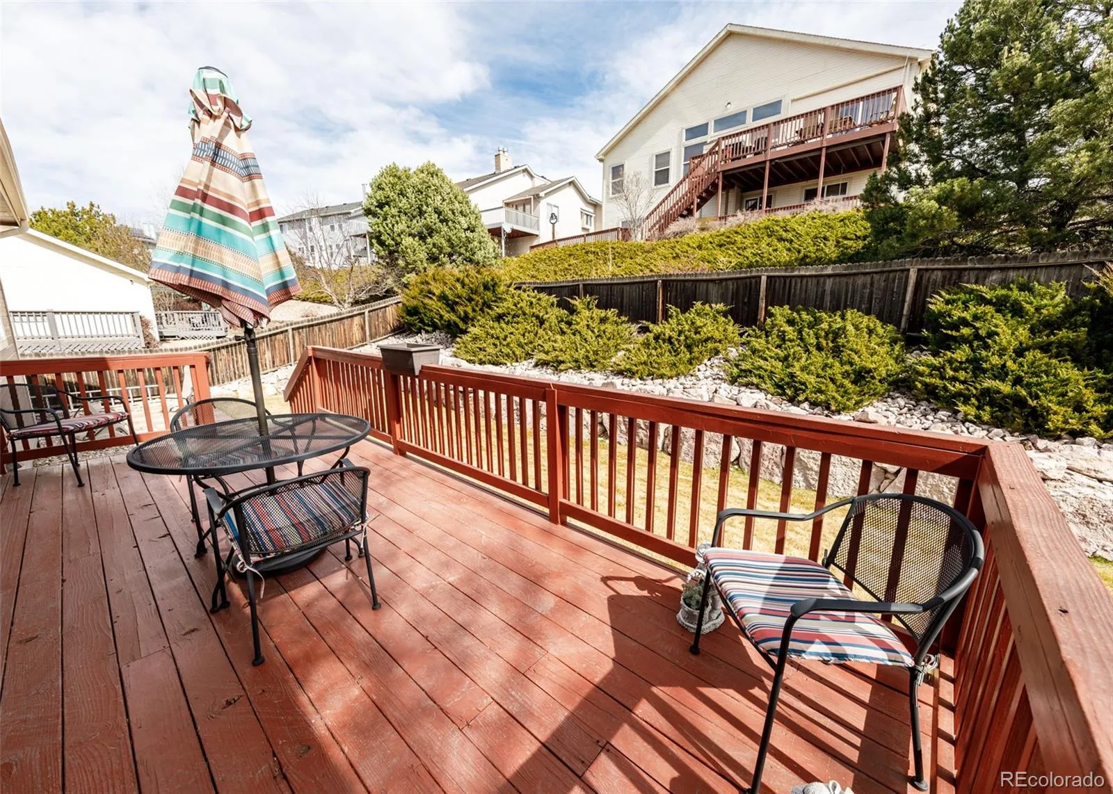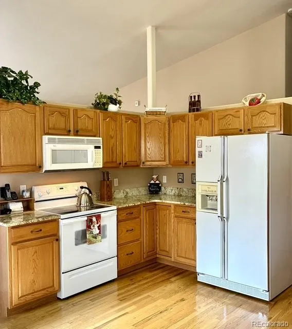 Experience main level living in this spotless, spacious 5 bedroom, 3 bath, 3-car garage ranch-style home on 8374 sqft lot in Dakota Ridge! Primary bedroom offers a walk-in closet and 5pc bath with soaking tub! Formal Living/Dining area! Gourmet kitchen presents pantry, smooth top electric range, built-in microwave and nook with walk-out to wood deck on the side of the home! Family room welcomes with gas log fireplace w/tile surround and walk-out to expanded wood decking in the backyard! Two additional bedrooms, one full bath and laundry/mudroom with utility sink and storage cabinets round out the main level! The full basement boasts two generous bedrooms (one with walk-in closet), large 3/4 bath with tile counter tops and dual vanity, wet bar area, recreation room plus media space w/ built-in surround sound and ample storage w/built-in shelves! Enjoy the outdoors all four seasons from the decks! Features of this home include: central air conditioning, vaulted ceilings, some bayed windows, hardwood floor in entry, kitchen and eating nook, granite countertops in kitchen, ceiling fans, humidifier and auto sprinkler system. Appliances include side-by-side refrigerator, smooth-top range, dishwasher, built-in microwave, washer & dryer, plus garage refrigerator! New Roof – GAF Timberline Armorshield ll Class IV shingles- installed March, 2026.