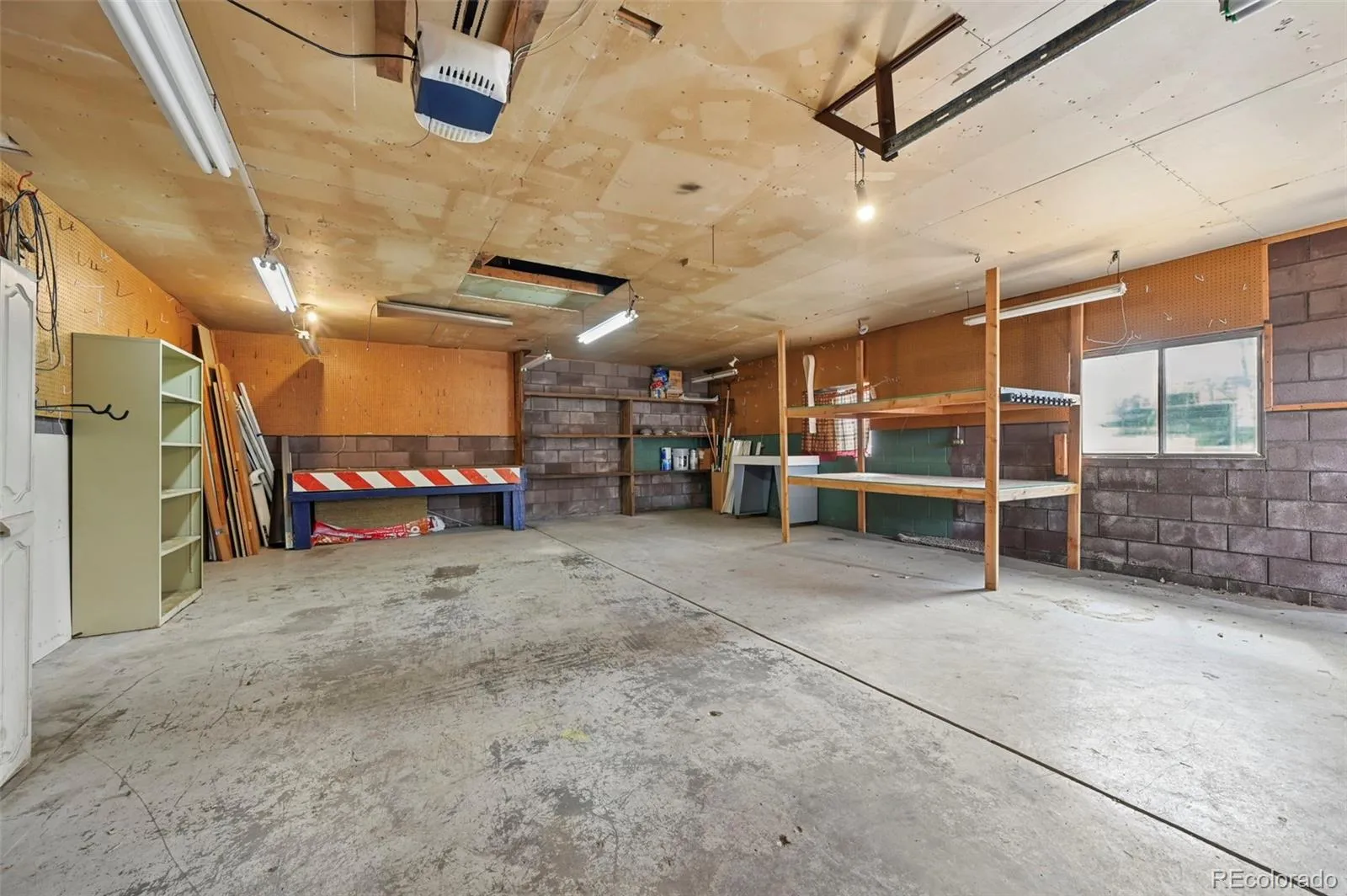 An oversized two-car garage with power provides ample room for parking, storage, or workshop space.